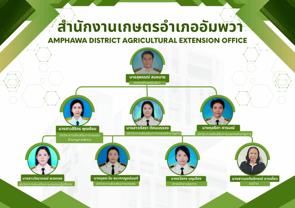 1. นายสุพรรณ์ สมหมาย เกษตรอำเภออัมพวา โทร 086-6117961