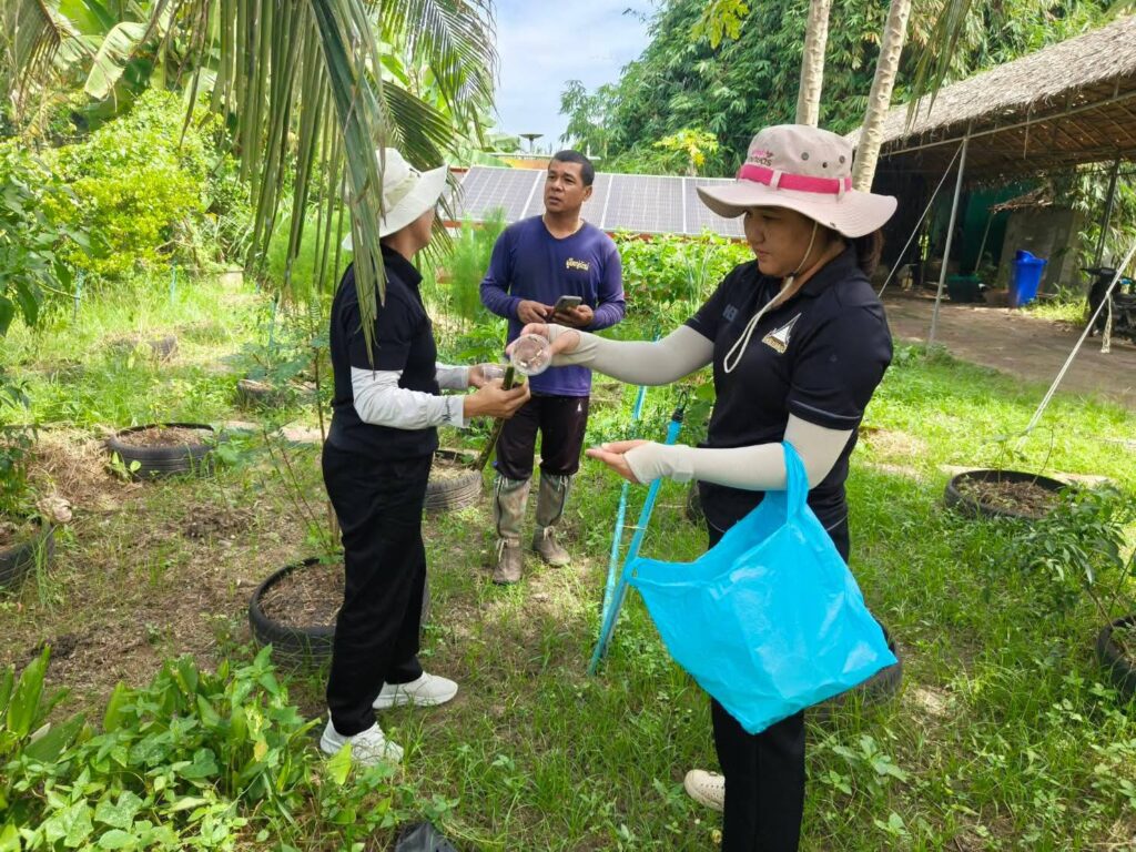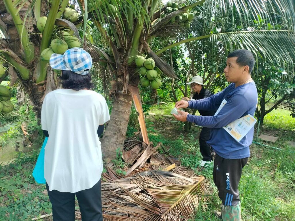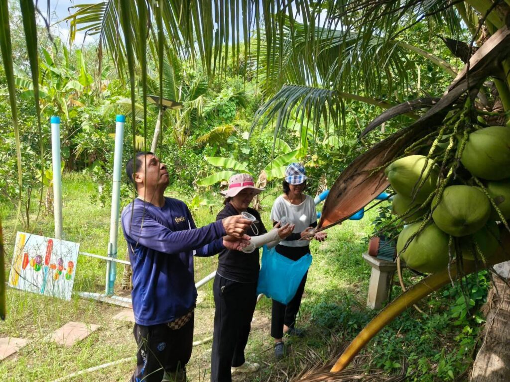 นายสุพรรณ์ สมหมาย เกษตรอำเภออัมพวา มอบหมายให้เจ้าหน้าที่สำนักงานเกษตรอำเภออัมพวา ลงพื้นที่ให้บริการคลินิกพืชวินิจฉัยอาการเบื้องต้นในแปลงมะพร้าวน้ำหอม พบมีร่องรอยการระบาดของหนอนหัวดำมะพร้าว และหนอนปลอก พร้อมสนับสนุนแตนเบียนบราคอนปล่อยภายในแปลงช่วยป้องกันหนอนหัวดำมะพร้าว ณ สวนพุทธเกษตร “โคกหนองนาโมเดล” ศูนย์เรียนรู้เศรษฐกิจพอเพียง ตำบลเหมืองใหม่ อำเภออัมพวา จังหวัดสมุทรสงคราม