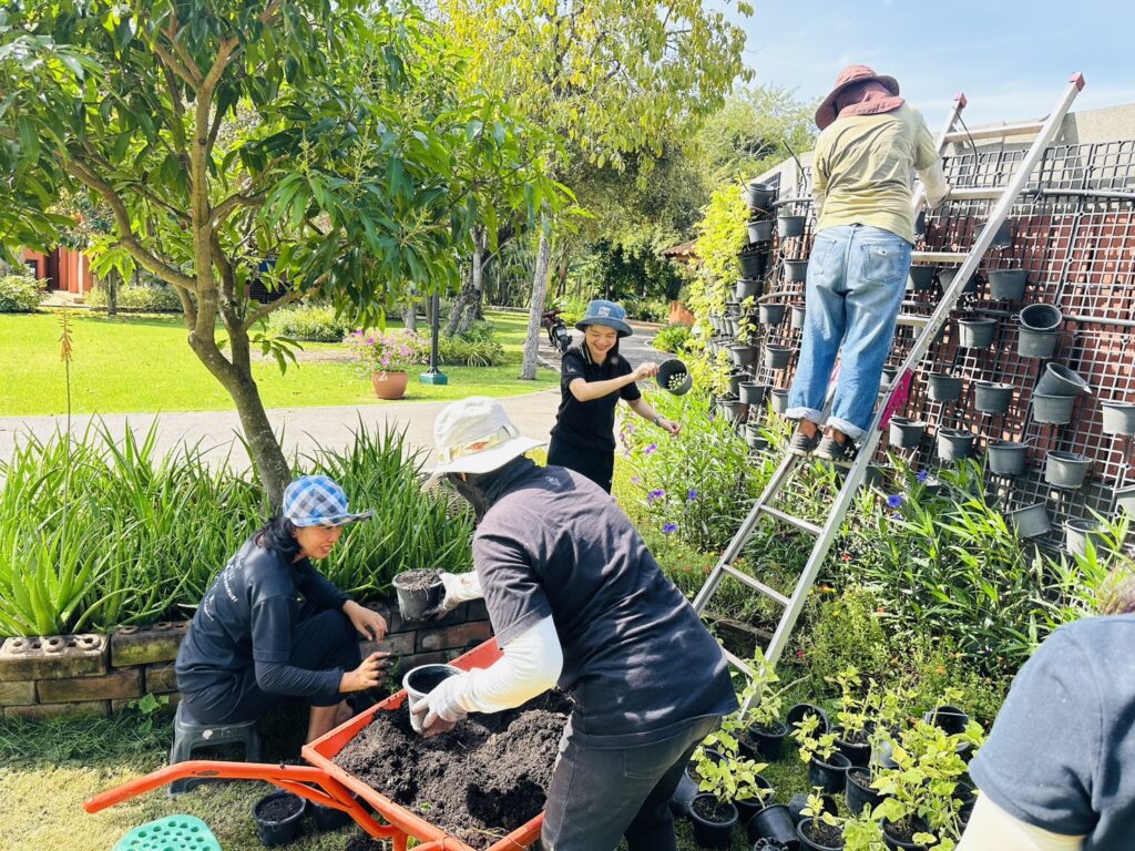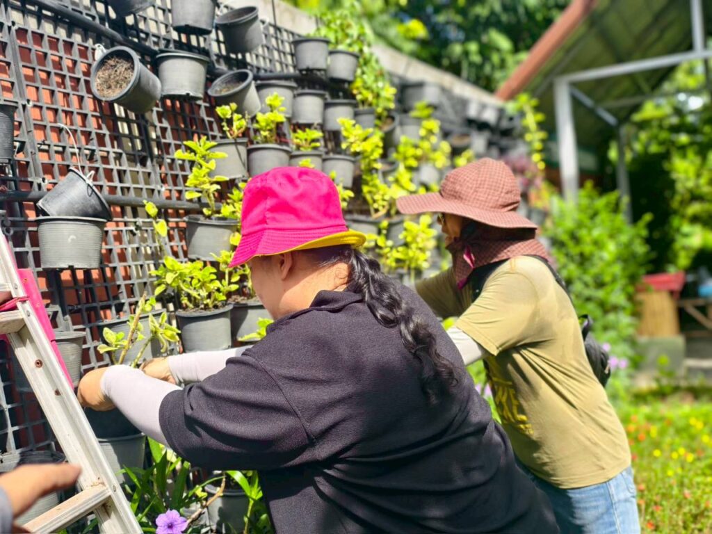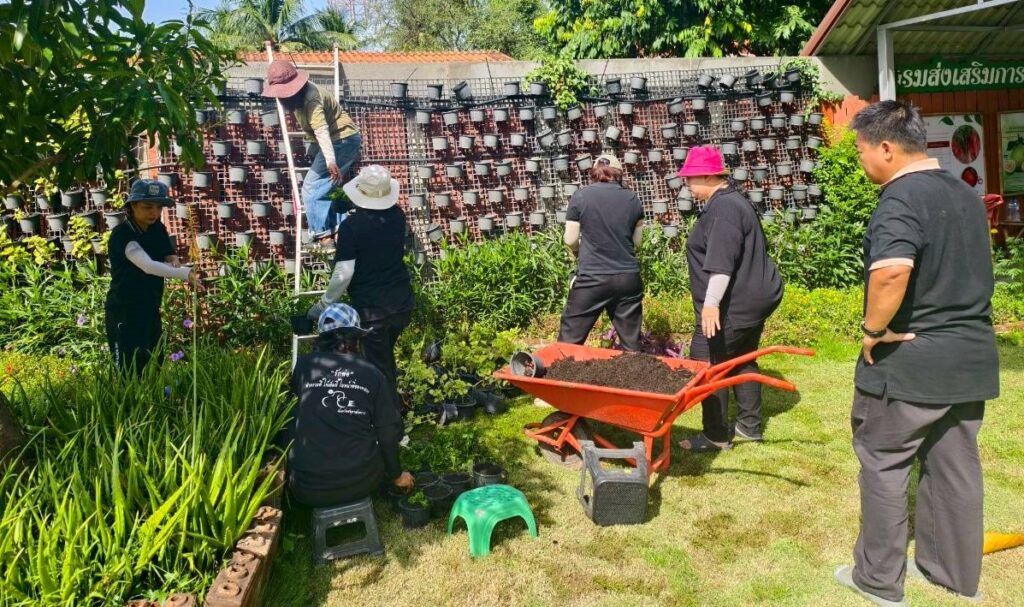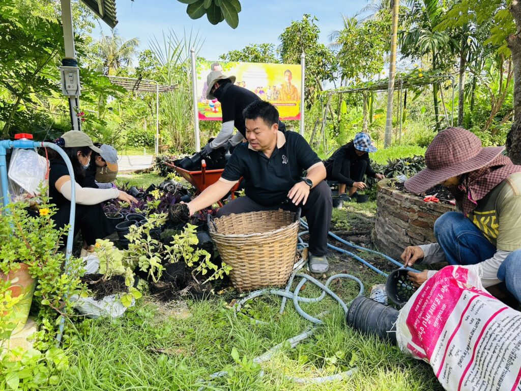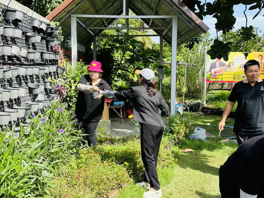 สำนักงานเกษตรอำเภออัมพวา ปรับปรุงภูมิทัศน์บริเวณด้านหน้าแปลงเรียนรู้เศรษฐกิจพอเพียง อุทยาน ร.2