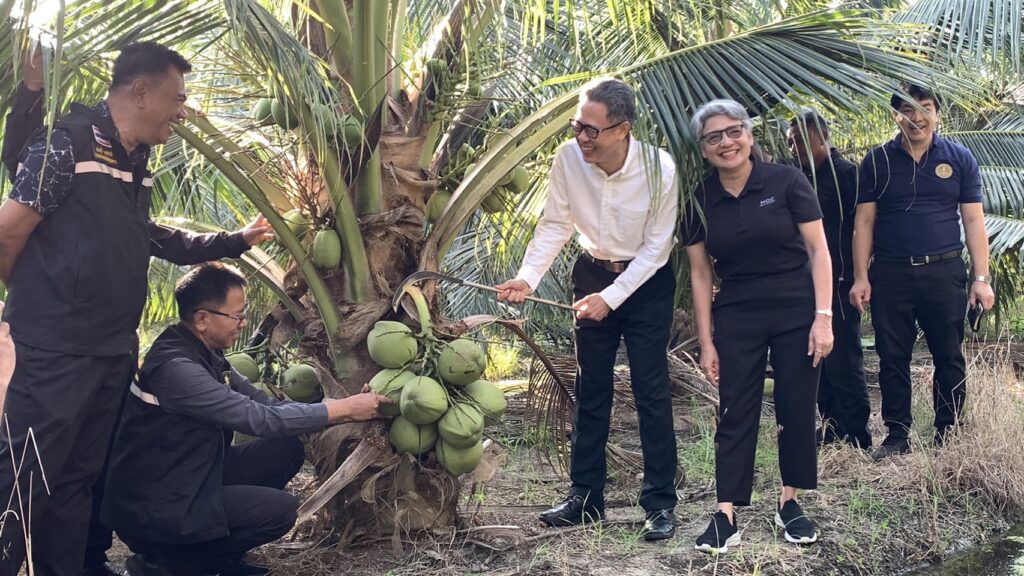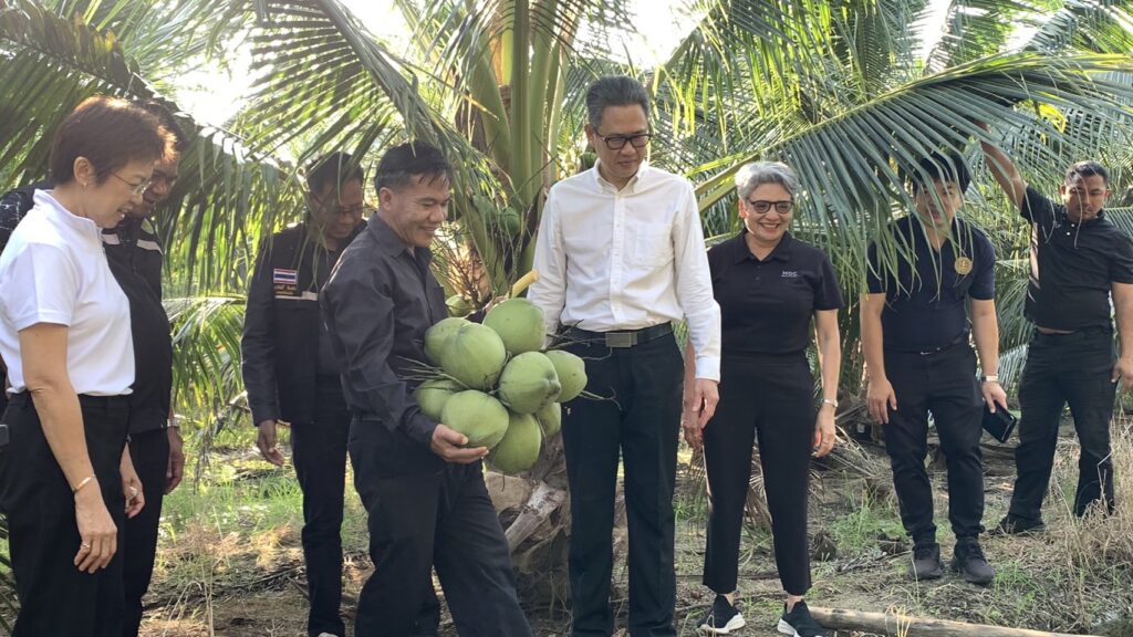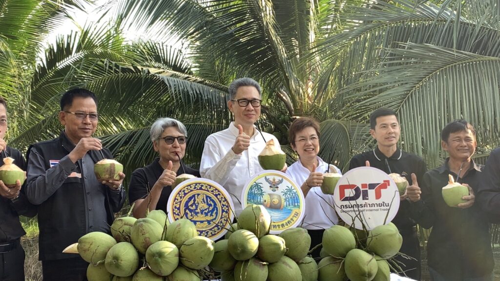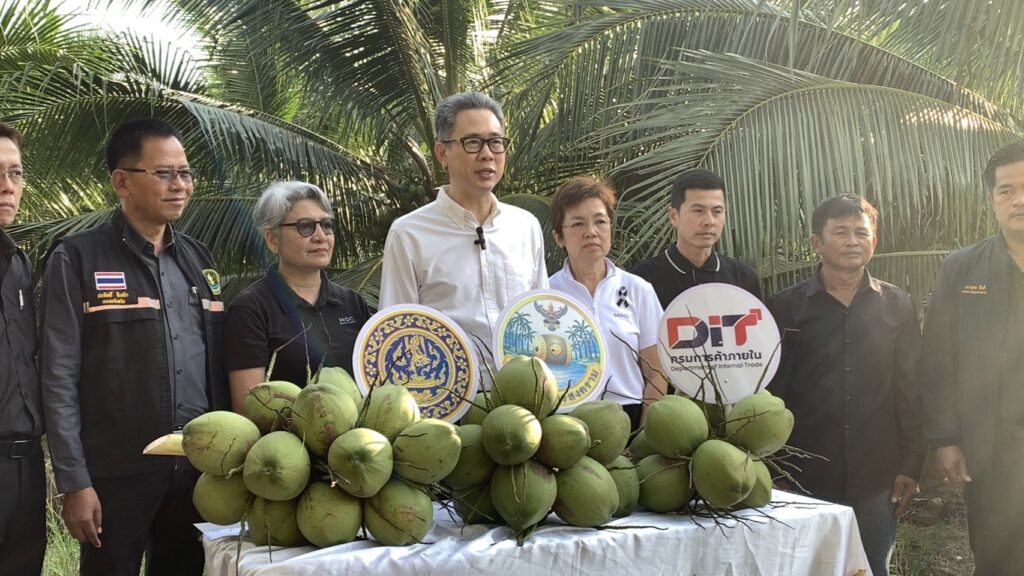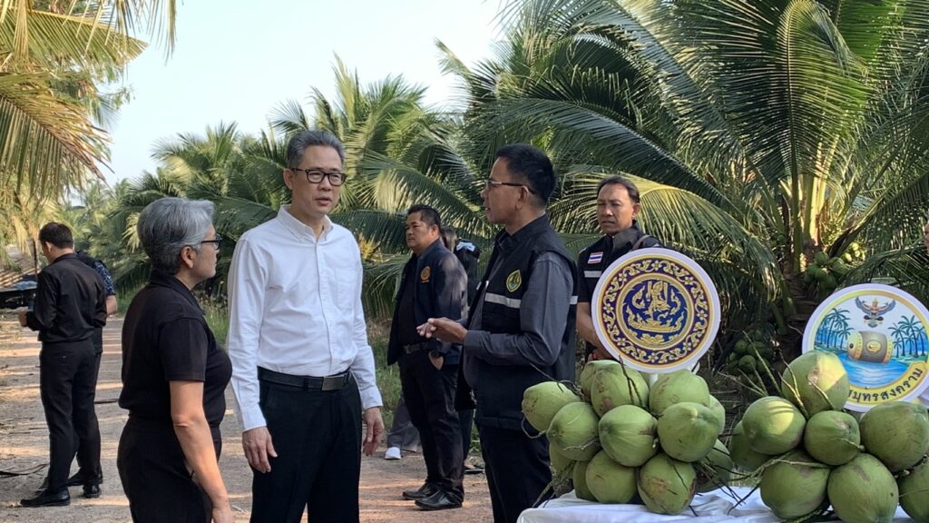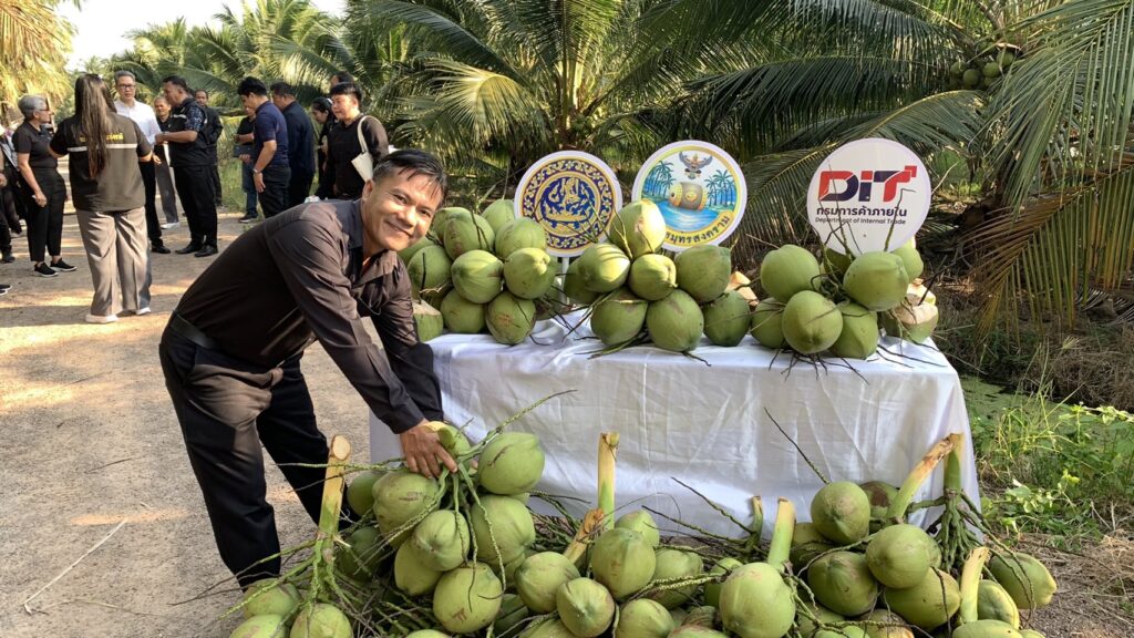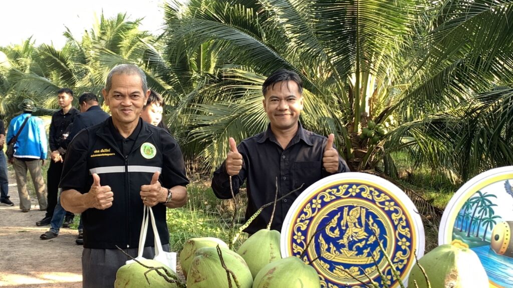 นายสุพรรณ์ สมหมาย เกษตรอำเภออัมพวา นำโดยนายประสิทธิ์ สิงห์ชา เกษตรจังหวัดสมุทรสงคราม พร้อมด้วยนายเสนีย์ ตรุยานนท์ หัวหน้ากลุ่มยุทธศาสตร์และสารสนเทศ ลงพื้นที่ร่วม Kick Off กิจกรรมเชื่อมโยงและระบายผลผลิตมะพร้าวน้ำหอม เพื่อช่วยเหลือเกษตรกรผู้ปลูกมะพร้าวน้ำหอมในจังหวัดสมุทรสงคราม จากปัญหาราคามะพร้าวน้ำหอมตกต่ำ โดยประสานโรงงานรับซื้อเพื่อส่งออกนอกพื้นที่ โดยมีนายรนัสถ์ชัย พุ่มเจริญ รองผู้ว่าราชการจังหวัดสมุทรสงคราม เป็นประธานเปิดงาน จัดกิจกรรมโดยสำนักงานพาณิชย์จังหวัดสมุทรสงคราม ณ สวนมะพร้าวน้ำหอม หมู่ 5 ตำบลปลายโพงพาง อำเภออัมพวา จังหวัดสมุทรสงคราม