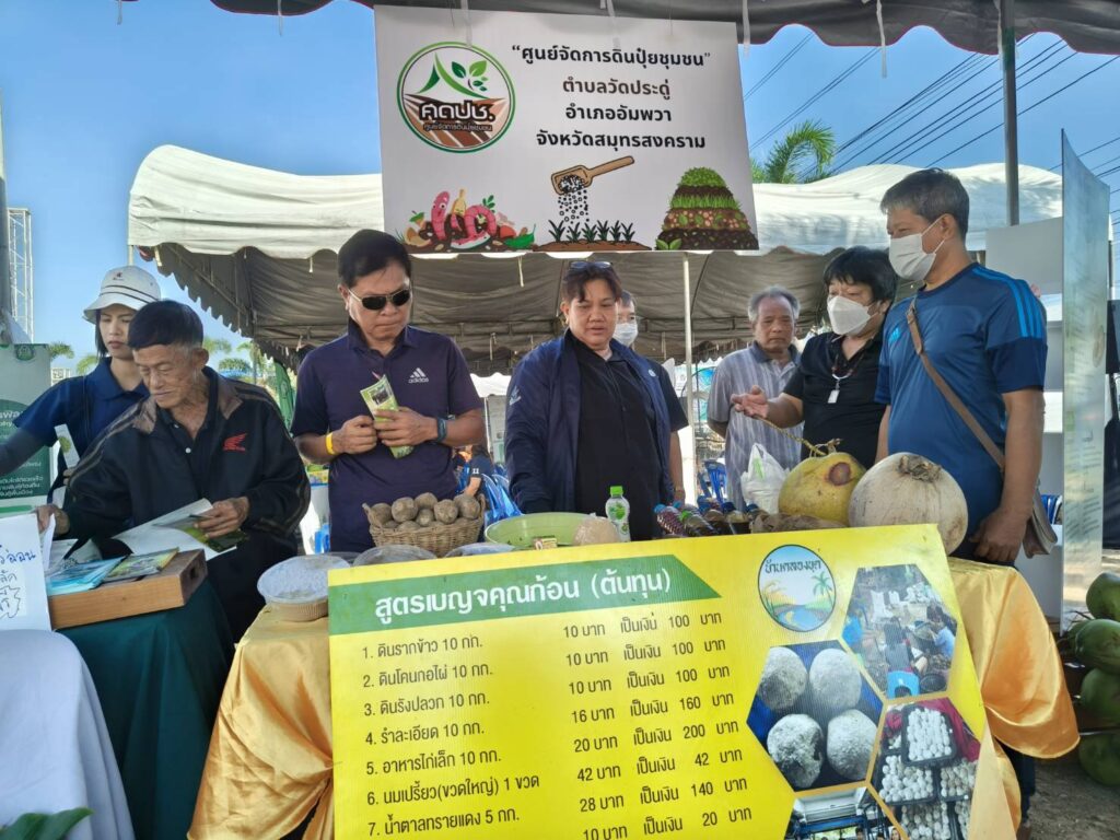 นายสุพรรณ์ สมหมาย เกษตรอำเภออัมพวา มอบหมายให้เจ้าหน้าที่สำนักงานเกษตรอำเภออัมพวา ร่วมกับศูนย์จัดการดินปุ๋ยชุมชนตำบลวัดประดู่ และเกษตรกรอำเภออัมพวา