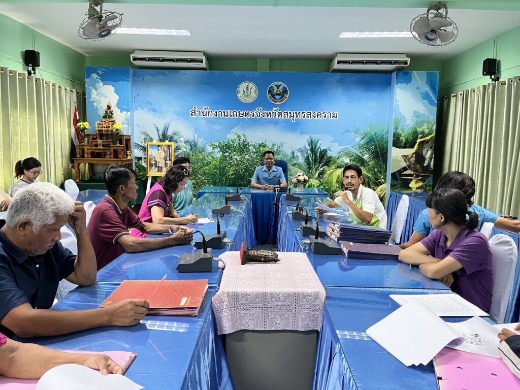 วันที่ 17 ตุลาคม 2568 นายประสิทธิ์ สิงห์ชา เกษตรจังหวัดสมุทรสงคราม พร้อมด้วยเกษตรอำเภอ เจ้าหน้าที่กลุ่มส่งเสริมและพัฒนาเกษตรกร และเจ้าหน้าที่สำนักงานเกษตรอำเภอ ร่วมดำเนินการจัดทำสัญญายืมพัสดุตามโครงการและงบประมาณเงินกู้เพื่อแก้ไขปัญหา เยียวยา และฟื้นฟูเศรษฐกิจและสังคมที่ได้รับผลกระทบจากการระบาดของโรคติดเชื้อไวรัสโคโรนา 2019 ประจำปีงบประมาณ พ.ศ. 2564 แผนงานฟื้นฟูเศรษฐกิจและสังคมที่ได้รับผลกระทบจากการระบาดของโรคติดเชื้อไวรัสโคโรนา 2019 โครงการส่งเสริมฟื้นฟูการผลิตน้ำตาลมะพร้าวแท้ เพื่อพัฒนาเป็นแหล่งท่องเที่ยวเชิงเกษตร กิจกรรม อบรมเกษตรกรหลักสูตรการผลิตน้ำตาลมะพร้าวแท้ในรูปแบบก้อน ผงและไซรัป ประจำปีงบประมาณ พ.ศ. 2569 กับกลุ่มวิสาหกิจชุมชนที่เข้าร่วมโครงการ จำนวน 20 กลุ่ม ณ ห้องประชุมสำนักงานเกษตรจังหวัดสมุทรสงคราม
