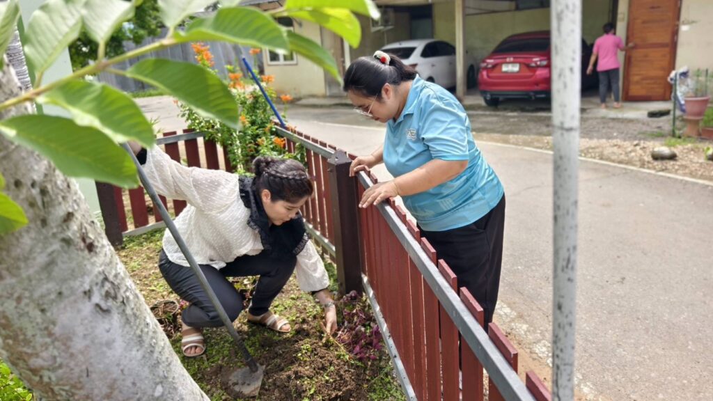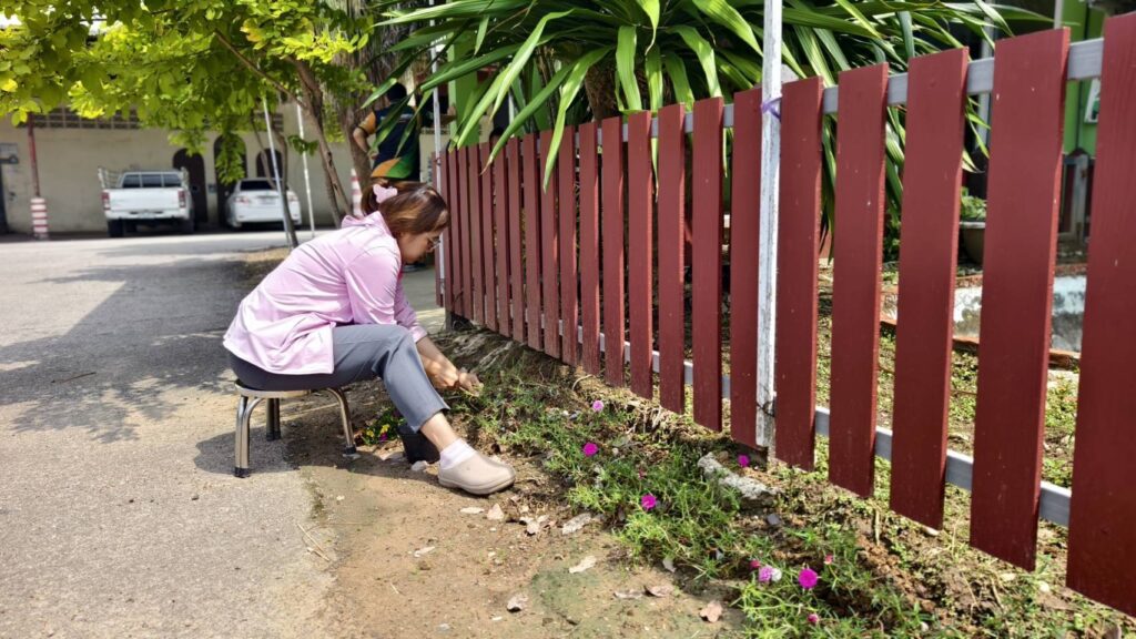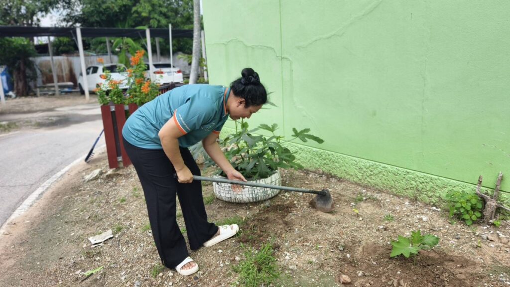 วันที่ 21 ตุลาคม 2568 นางสาวฉัตรแก้ว จันทร์คง เกษตรอำเภอบางคนที พร้อมด้วยเจ้าหน้าที่สำนักงานเกษตรอำเภอบางคนที ร่วมทำกิจกรรมพัฒนาและปรับภูมิทัศน์บริเวณโดยรอบสำนักงานฯ ตามกระบวนการกิจกรรม 5ส. เพื่อปรับปรุงและแก้ไขสภาพแวดล้อมในสถานที่ทำงานให้ดีขึ้น สะอาดและเป็นระเบียบเรียบร้อย สร้างความประทับใจให้แก่ประชาชนและเกษตรกรที่เข้ามาติดต่อราชการ อีกทั้งยังเป็นการเสริมสร้างขวัญและกำลังใจ เกิดความสามัคคีในการร่วมมือในการทำงานของเจ้าหน้าที่ทุกคน