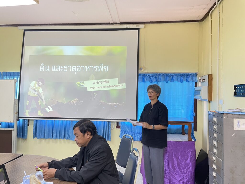 👩🏫วันที่ 24 ธันวาคม 2568 นางสาวฉัตรแก้ว จันทร์คง เกษตรอำเภอบางคนที พร้อมด้วยเจ้าหน้าที่สำนักงานเกษตรอำเภอบางคนที และเจ้าหน้าที่สำนักงานเกษตรจังหวัดสมุทรสงคราม ร่วมดำเนินการจัดเวทีแลกเปลี่ยนเรียนรู้เพื่อพัฒนางานอาสาสมัครเกษตรหมู่บ้าน (อกม.)โครงการพัฒนาอาสาสมัครเกษตรหมู่บ้าน ประจำปีงบประมาณ 2569 กิจกรรมการส่งเสริมและพัฒนากระบวนการปฏิบัติงานอาสาสมัครเกษตร โดยมีวัตถุประสงค์เพื่อเพิ่มศักยภาพของอาสาสมัครเกษตร ในการสนับสนุนการขับเคลื่อนงานพัฒนาการเกษตร เสริมสร้างการสร้างเครือข่ายการทำงานอาสาสมัครเกษตรหมู่บ้าน ทั้งนี้ได้ดำเนินการถ่ายทอดเทคโนโลยีการทำเกษตรแม่นยำการใช้ปุ๋ยตามค่าวิเคราะห์ดิน และถ่ายทอดความรู้การทำเกษตรที่เป็นมิตรกับสิ่งแวดล้อมการจัดการศัตรูพืชโดยชีววิธี เพื่อยกระดับการผลิตพืชของเกษตรกรให้มีมาตรฐาน ควบคู่กับการดูแลสิ่งแวดล้อมในพื้นที่การเกษตรอย่างยั่งยืน
