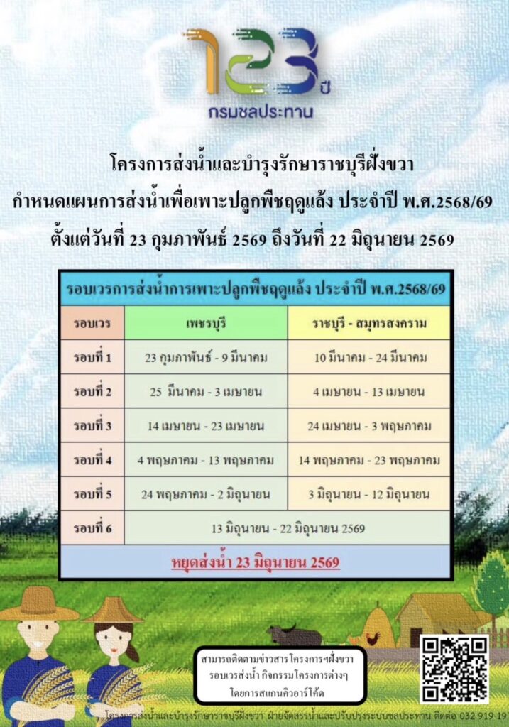 ข่าวประชาสัมพันธ์ประชาสัมพันธ์แผนการส่งน้ำเพื่อเพาะปลูกพืชฤดูแล้ง bangkhonthi / 9 กุมภาพันธ์ 2026 แผนการส่งน้ำเพื่อเพา