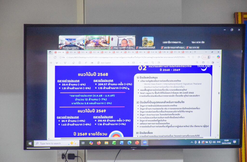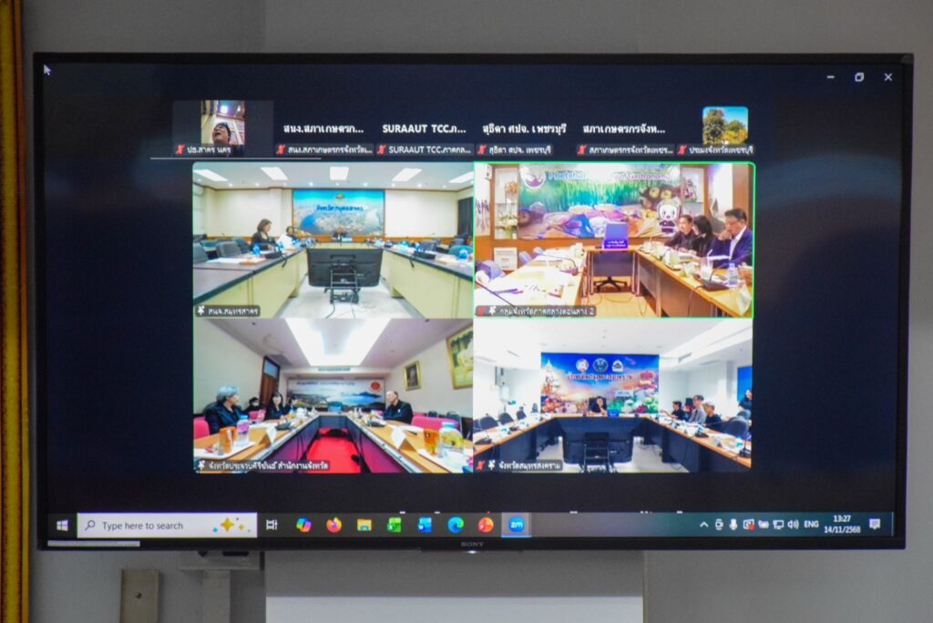 วันที่ 14 พฤศจิกายน 2568 เวลา 13.30 น. นายประสิทธิ์ สิงห์ชา เกษตรจังหวัดสมุทรสงคราม มอบหมายให้ นายเสนีย์ ตรุยานนท์ หัวหน้ากลุ่มยุทธศาสตร์และสารสนเทศ ร่วมประชุมคณะกรรมการร่วมภาครัฐและเอกชน เพื่อแก้ไขปัญหาทางเศรษฐกิจกลุ่มจังหวัดภาคกลางตอนล่าง 2 (กรอ.กลุ่มจังหวัด) ครั้งที่ 1/2569 โดยมีนายกรกฎ วงษ์สุวรรณ รองผู้ว่าราชการจังหวัดสมุทรสงคราม เป็นประธาน ผ่านระบบสื่ออิเล็กทรอนิกส์ (Zoom Coference Meeting) ณ ห้องประชุมอัมพวา ชั้น 4 ศาลากลางจังหวัดสมุทรสงคราม