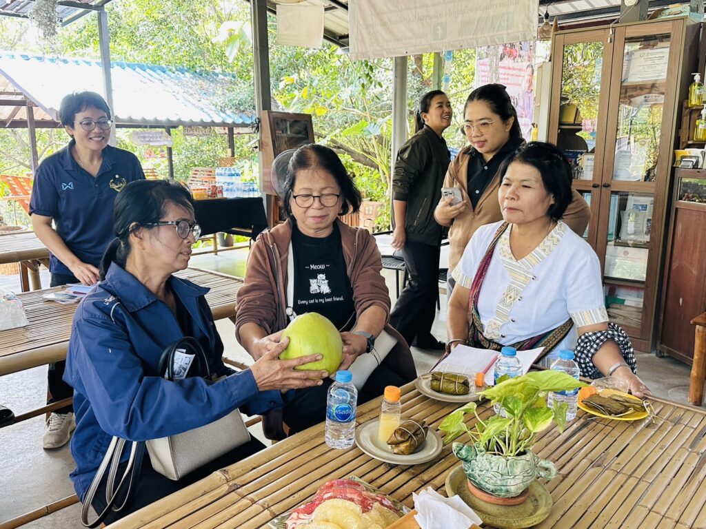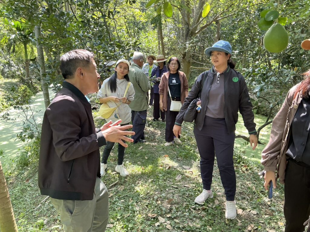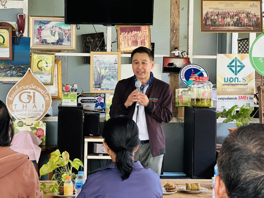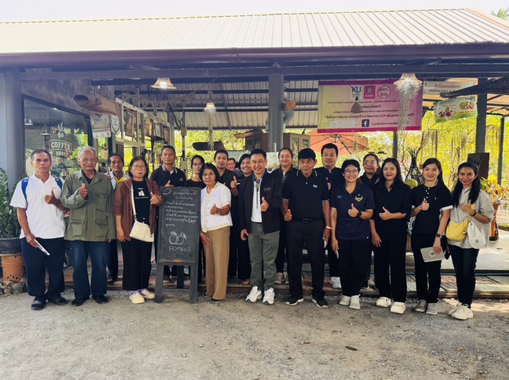 นายประสิทธิ์ สิงห์ชา เกษตรจังหวัดสมุทรสงคราม มอบหมายให้นางมัทยา สุนทรวาทิน หัวหน้ากลุ่มส่งเสริมและพัฒนาการผลิต พร้อมด้วยเจ้าหน้าที่สำนักงานเกษตรอำเภออัมพวา ร่วมนำเกษตรกรศึกษาดูงาน โครงการระบบส่งเสริมเกษตรแบบแปลงใหญ่ เพื่อปรับเพิ่มผลิตภาพการผลิต ประจำปีงบประมาณ พ.ศ. 2569 กิจกรรมพัฒนาคุณภาพมาตรฐานสินค้าเกษตรในแปลงใหญ่ยกระดับการผลิตและคุณภาพผลผลิตสินค้าเกษตรสู่มาตรฐาน GAP เพื่อถ่ายทอดความรู้ให้แก่เกษตรกรเข้าสู่ระบบมาตรฐาน GAP ณ “สวนส้มโอไทยทวี นครชัยศรี” หมู่ที่ 5 ตำบลสัมปทาน อำเภอนครชัยศรี จังหวัดนครปฐม