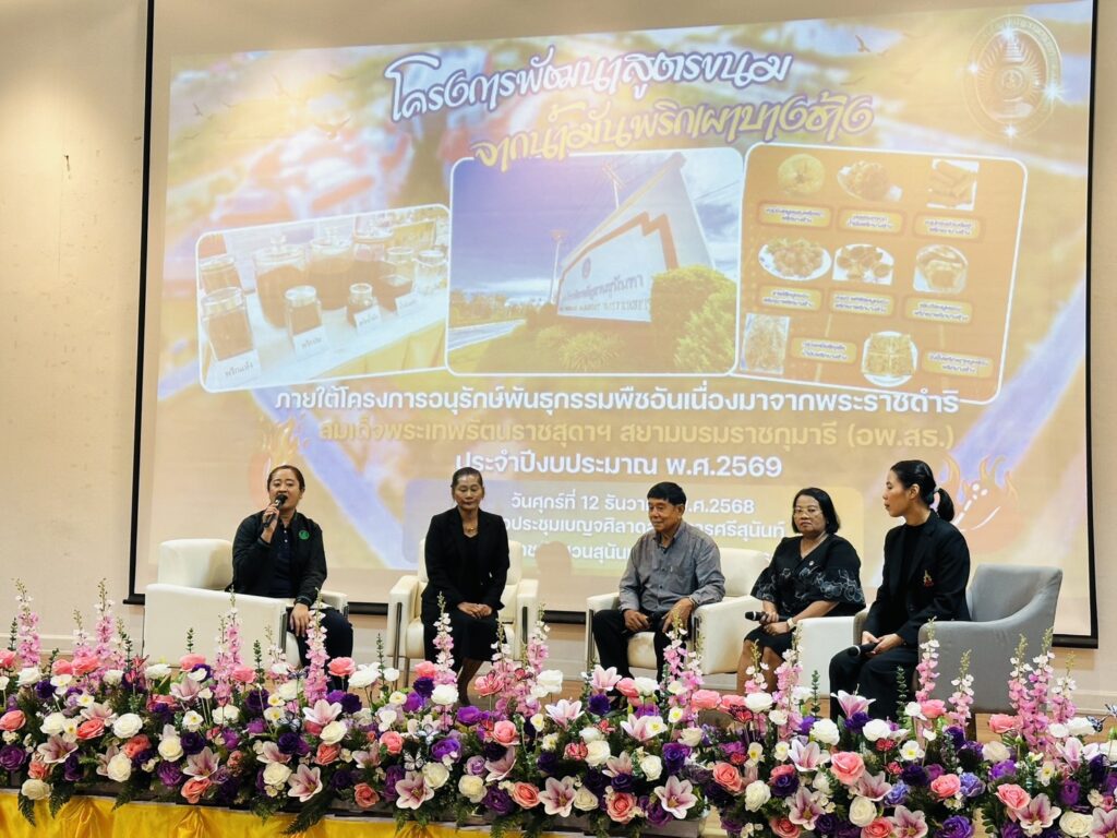 วันที่ 12 ธันวาคม 2568 นายประสิทธิ์ สิงห์ชา #เกษตรจังหวัดสมุทรสงคราม มอบหมายให้นางมัทยา สุนทรวาทิน หัวหน้ากลุ่มส่งเสริมและพัฒนาการผลิต พร้อมด้วยเจ้าหน้าที่กลุ่มส่งเสริมและพัฒนาการผลิต เข้าร่วมเสวนาและเป็นวิทยากรประจำฐานเรียนรู้ บรรยาย เรื่อง การสร้างจิตสำนึกในการอนุรักษ์พริกบางช้าง ตามโครงการบริการวิชาการภายใต้โครงการอนุรักษ์พันธุกรรมพืชอันเนื่องมาจากพระราชดำริ สมเด็จพระเทพรัตนราชสุดาฯ สยามบรมราชกุมารี (อพ.สธ.) ประจำปีงบประมาณ พ.ศ. 2569 โดยมีวัตถุประสงค์เพื่อสนองพระราชดำริโครงการอนุรักษ์พันธุกรรมพืชอันเนื่องมาจากพระราชดำริฯ (อพ.สธ.) และปลูกฝังให้นักเรียนมีจิตสำนึกในการอนุรักษ์พริกบางข้างให้คงอยู่และไม่ให้สูญหายไปจากพื้นที่ดั้งเดิม ณ มหาวิทยาลัยราชภัฏสวนสุนันทา วิทยาเขตสมุทรสงคราม ตำบลบางแก้ว อำเภอเมืองสมุทรสงคราม จังหวัดสมุทรสงคราม