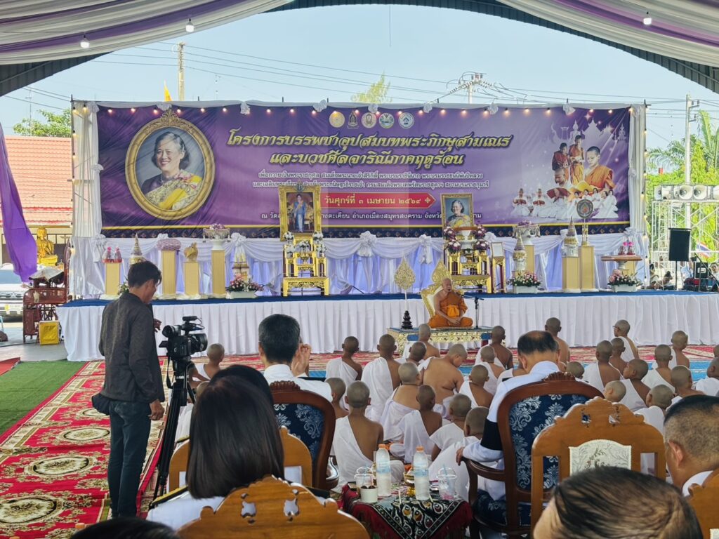 วันที่ 3 เมษายน 2569 เวลา 08.30 น. นายประสิทธิ์ สิงห์ชา เกษตรจังหวัดสมุทรสงคราม มอบหมายให้นางมัทยา สุนทรวาทิน หัวหน้ากลุ่มส่งเสริมและพัฒนาการผลิต เข้าร่วมพิธีบรรพชาสามเณรและบวชศีลจาริณีถวายพระราชกุศล สมเด็จพระนางเจ้าสิริกิติ์พระบรมราชินีนาถ พระบรมราชชนนีพันปีหลวง เฉลิมพระเกียรติสมเด็จพระกนิษฐาธิราชเจ้ากรมสมเด็จพระเทพรัตนราชสุดาฯ สยามบรมราชกุมารี เนื่องในโอกาสวันคล้ายวันพระราชสมภพ 2 เมษายน ณ วัดลาดเป้ง ตำบลนางตะเคียน อำเภอเมืองสมุทรสงคราม จังหวัดสมุทรสงคราม