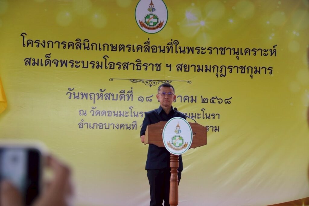 นายประสิทธิ์ สิงห์ชา เกษตรจังหวัดสมุทรสงคราม นำทีมเจ้าหน้าที่สำนักงานสำนักงานเกษตรจังหวัดสมุทรสงครามและสำนักงานเกษตรอำเภอทั้ง 3 อำเภอ จัดโครงการคลินิกเกษตรเคลื่อนที่ในพระราชานุเคราะห์ฯ สมเด็จพระบรมโอรสาธิราช ฯ สยามมกุฎราชกุมาร ไตรมาส 1 ประจำปีงบประมาณ พ.ศ. 2569 โดยมีนายชยชัย แสงอินทร์ ผู้ว่าราชการจังหวัดสมุทรสงคราม เป็นประธานเปิดงานโครงการคลินิกเกษตรเคลื่อนที่ฯ ซึ่งมีนายปริพล ทัดแก้ว นายอำเภอบางคนที