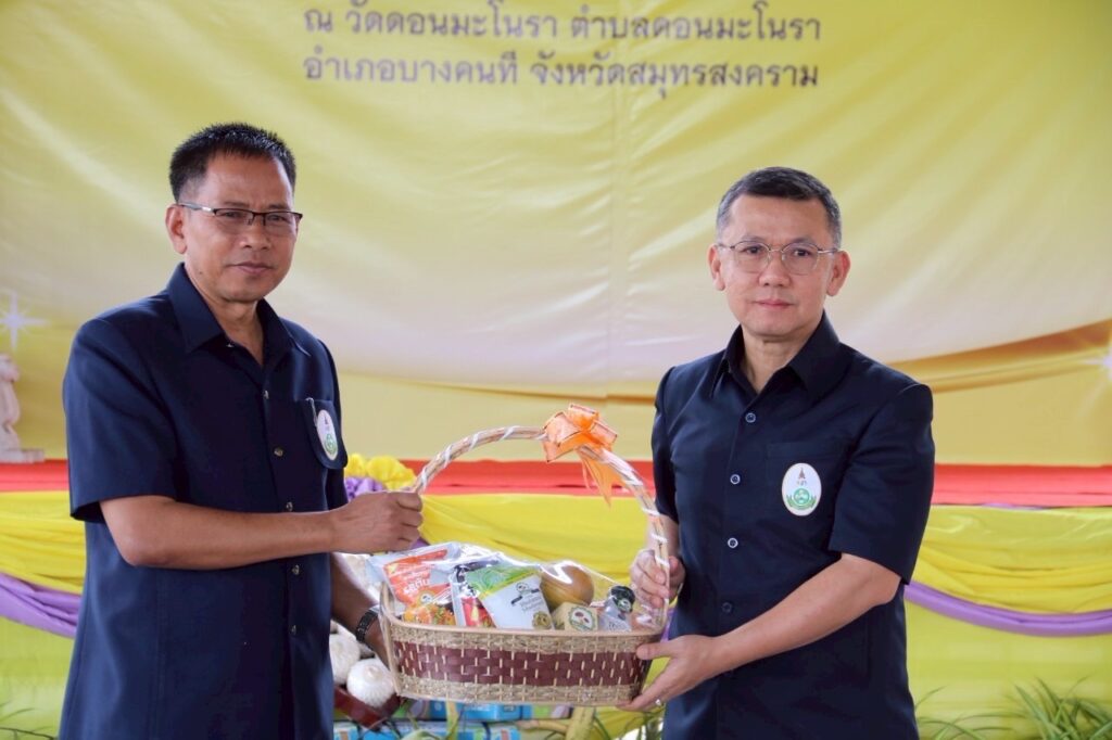 กล่าวต้อนรับ และนายประสิทธิ์ สิงห์ชา เกษตรจังหวัดสมุทรสงคราม กล่าวรายงาน พร้อมด้วยพระครูสมุทรวัฒนาภรณ์ (เจริญ คเวสโก) เจ้าอาวาสวัดดอนมะโนรา หัวหน้าหน่วยงานในสังกัดกระทรวงเกษตรและสหกรณ์ หัวหน้าส่วนราชการในจังหวัดสมุทรสงครามและจังหวัดใกล้เคียง ร่วมเป็นเกียรติในพิธีเปิดงาน โดยมีผู้นำท้องถิ่น ผู้นำท้องที่ และเกษตรกรเข้าร่วมงานเป็นจำนวนมาก ณ วัดดอนมะโนรา ตำบลดอนมะโนรา อำเภอบางคนที จังหวัดสมุทรสงคราม