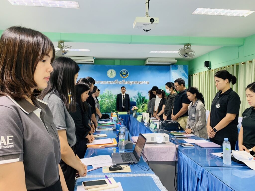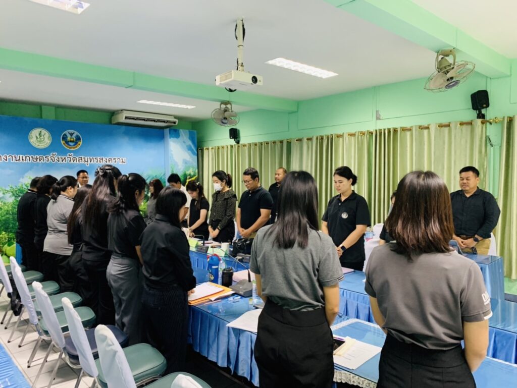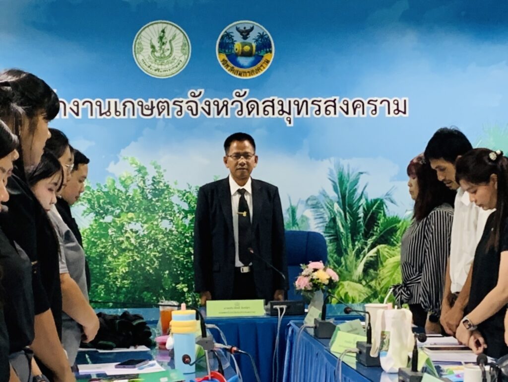 นายประสิทธิ์ สิงห์ชา เกษตรจังหวัดสมุทรสงคราม เป็นประธานการประชุมสำนักงานเกษตรจังหวัด และประชุมเกษตรอำเภอ ครั้งที่ 10/2568 (ประจำเดือนตุลาคม) โดยมีหัวหน้ากลุ่ม หัวหน้าฝ่ายบริหารทั่วไป และเกษตรอำเภอทั้ง 3 อำเภอ เข้าร่วมประชุม โดยก่อนเริ่มการประชุม ผู้เข้าร่วมประชุมได้ร่วมกัน ยืนสงบนิ่งน้อมถวายความอาลัยแด่ สมเด็จพระนางเจ้าสิริกิติ์ พระบรมราชินีนาถ พระบรมราชชนนีพันปีหลวง เสด็จสู่สวรรคาลัย จากนั้นได้ร่วมกันชี้แจงข้อราชการ วางแผน และติดตามผลการดำเนินงานโครงการประจำปีงบประมาณ พ.ศ. 2569 ตามระบบส่งเสริมการเกษตร ตลอดจนแลกเปลี่ยนเรียนรู้ปัญหา อุปสรรค และแนวทางการพัฒนา เพื่อให้การดำเนินงานส่งเสริมการเกษตรของจังหวัด เป็นไปอย่างมีประสิทธิภาพ ณ ห้องประชุมสำนักงานเกษตรจังหวัดสมุทรสงคราม