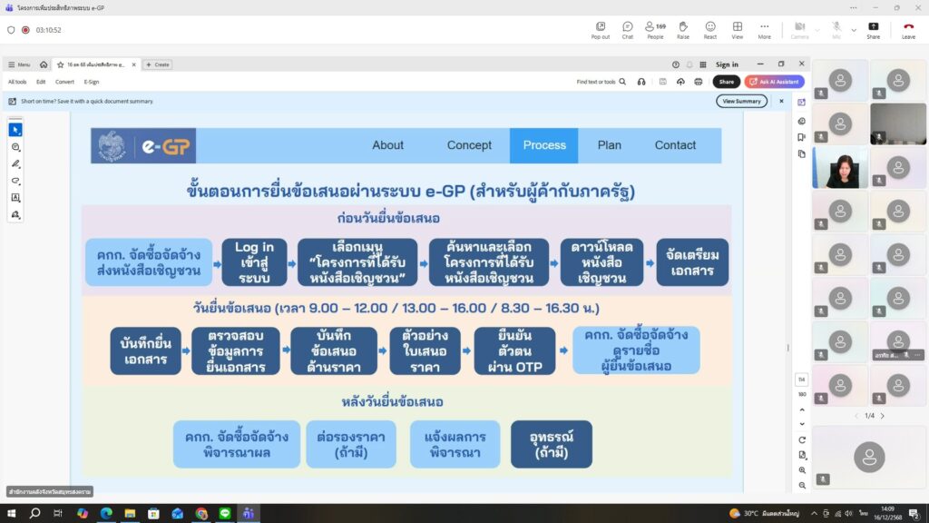 ฝ่ายบริหารทั่วไป ร่วมอบรมหลักสูตร การเพิ่มประสิทธิภาพการจัดซื้อจัดจ้างด้วยวิธีอิเล็กทรอนิกส์ (Electronic Government Procurement : e-GP) สำหรับผู้ปฏิบัติงานของหน่วยงานของรัฐในส่วนภูมิภาค (แบบออนไลน์)