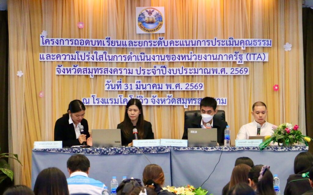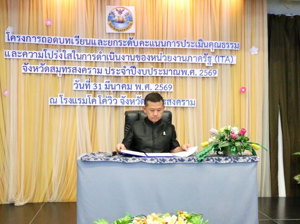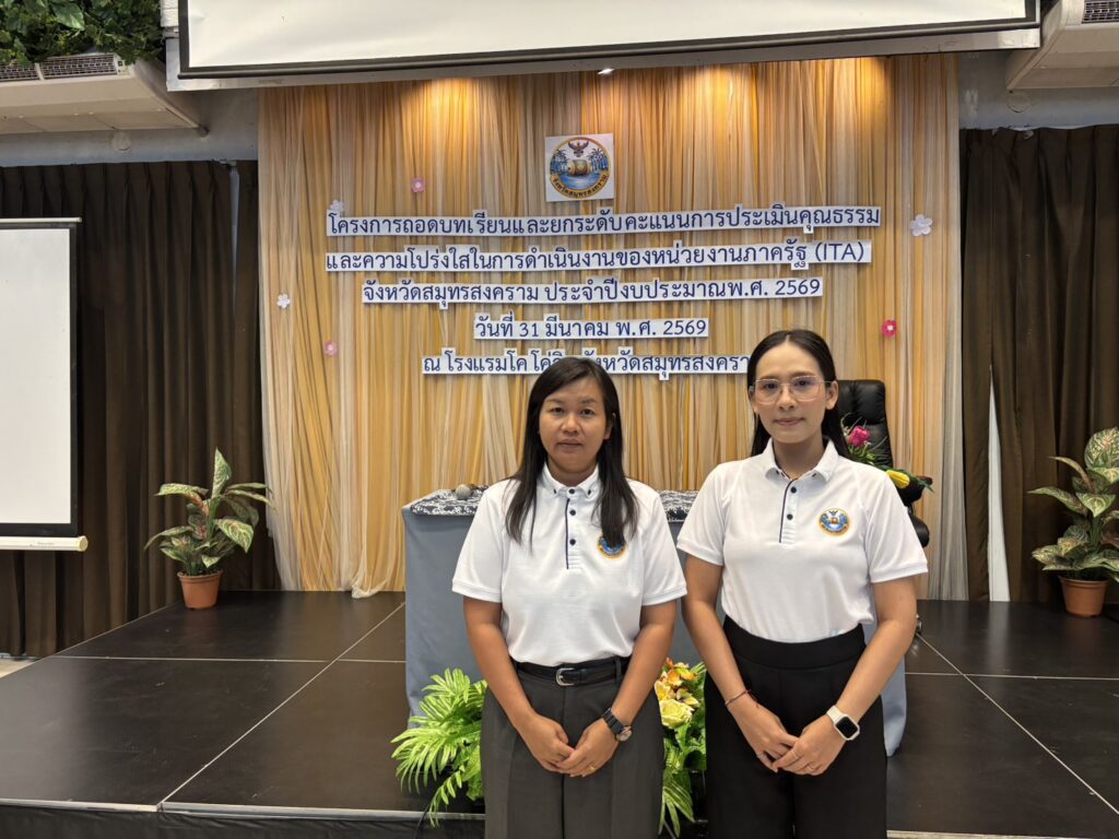 วันที่ 31 มีนาคม 2569 เวลา 9.00 น. นายประสิทธิ์ สิงห์ชา เกษตรจังหวัดสมุทรสงคราม มอบหมายให้เจ้าหน้าที่ฝ่ายบริหารทั่วไป เข้าร่วมโครงการถอดบทเรียนและยกระดับคะแนนการประเมินคุณธรรมและความโปร่งใสในการดำเนินงานของหน่วยงานภาครัฐ (ITA) จังหวัด ประจำปีงบประมาณ พ.ศ. 2569 เพื่อพัฒนาภาครัฐ ด้านคุณธรรมความโปร่งใสอันจะนำไปสู่การป้องกันการทุจริตในภาครัฐได้โดยมีวัตถุประสงค์เพื่อให้หน่วยงานภาครัฐได้รับทราบสถานะด้านคุณธรรม ความโปร่งใสตลอดจนใช้ให้เกิดประโยชน์ในการนำไปปรับปรงพัฒนาตนเองนอกจากนี้ยังช่วยให้หน่วยงานสามารถนำไปจัดทำแนวทางในการป้องกันการทุจริตและประพฤติมิชอบของส่วนราชการได้ การประเมินคุณธรรมและความโปร่งใส ประจำปี งบประมาณ พ.ศ. 2569 โดยมี นาย ชยชัย แสงอินทร์ ผู้ว่าราชการจังหวัดสมุทรสงคราม เป็นประธาน ณ โรงแรม โคโค่ วิว ตำบลแม่กลอง อำเภอเมือง จังหวัดสมุทรสงคราม