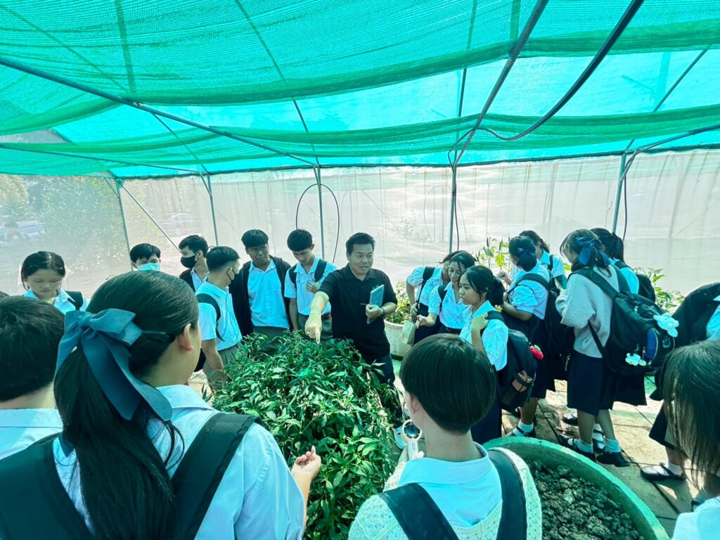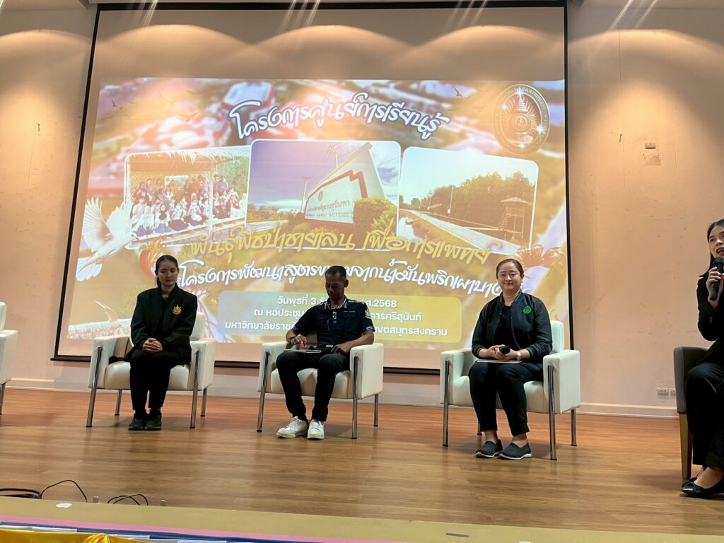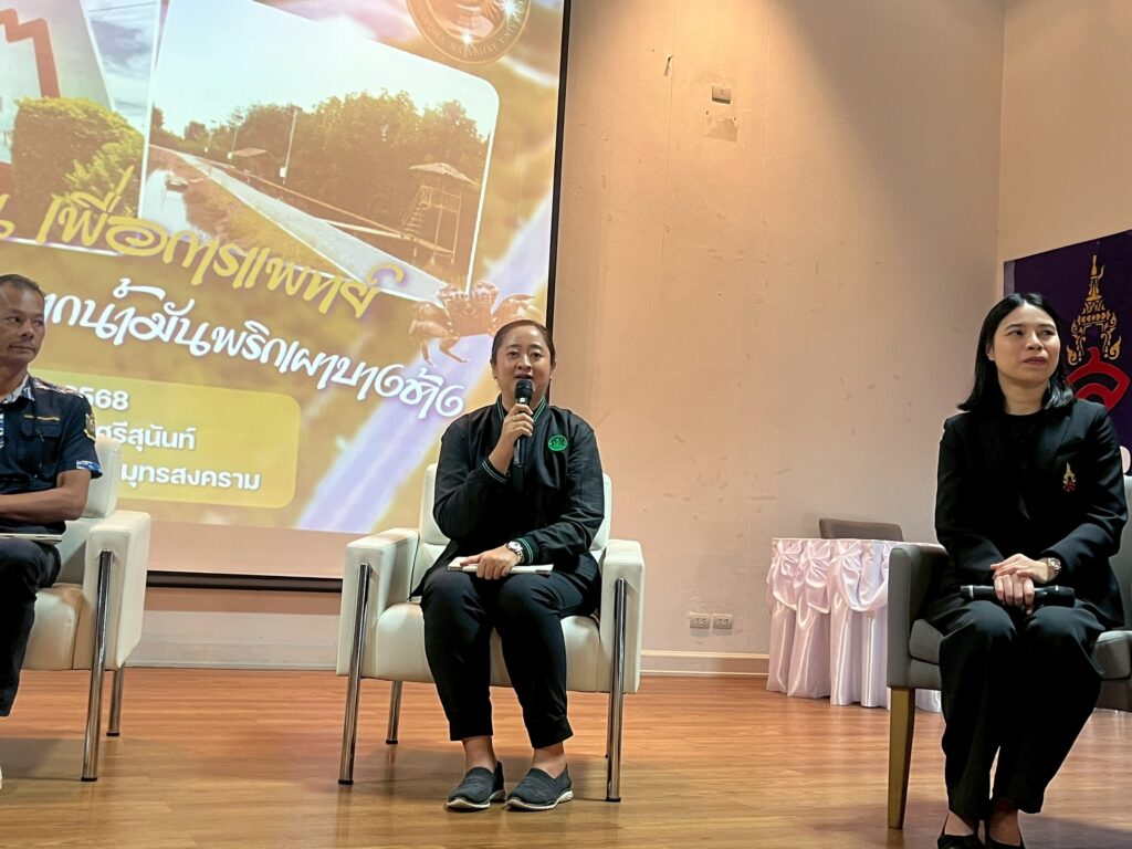 วันที่ 3 ธันวาคม 2568 นายประสิทธิ์ สิงห์ชา #เกษตรจังหวัดสมุทรสงคราม มอบหมายให้นางมัทยา สุนทรวาทิน หัวหน้ากลุ่มส่งเสริมและพัฒนาการผลิต พร้อมด้วยเจ้าหน้าที่ กลุ่มส่งเสริมและพัฒนาการผลิต สำนักงานเกษตรจังหวัดสมุทรสงคราม เข้าร่วมเสวนาและวิทยากรประจำฐานเรียนรู้ บรรยาย เรื่อง การอนุรักษ์พันธุ์พืชประจำถิ่นของจังหวัดสมุทรสงครามและการอนุรักษ์พริกบางช้าง ตามโครงการศูนย์การเรียนรู้พันธุ์พืชป่าชายเลน เพื่อการแพทย์ ซึ่งเป็นโครงการบริการวิชาการภายใต้โครงการอนุรักษ์พันธุกรรมพืชอันเนื่องมาจากพระราชดำริ สมเด็จพระเทพรัตนราชสุดาฯ สยามบรมราชกุมารี (อพ.สธ.) ประจำปีงบประมาณ พ.ศ. 2569 โดยมีวัตถุประสงค์เพื่อสนอง พระราชดำริโครงการอนุรักษ์พันธุกรรมพืชอันเนื่องมาจากพระราชดําริฯ และสร้างความตระหนักรู้ให้กับเยาวชนในการอนุรักษ์พันธุ์พืชประจำถิ่น และสัตว์ในป้าชายเลน โดยมีเป้าหมายเป็นนักเรียนระดับมัธยมศึกษาตอนปลายในจังหวัดสมุทรสงคราม จำนวน 238 คน ณ มหาวิทยาลัยราชภัฏสวนสุนันทา วิทยาเขตสมุทรสงคราม ตำบลบางแก้ว อำเภอ