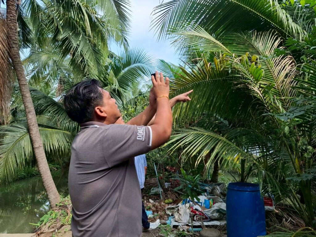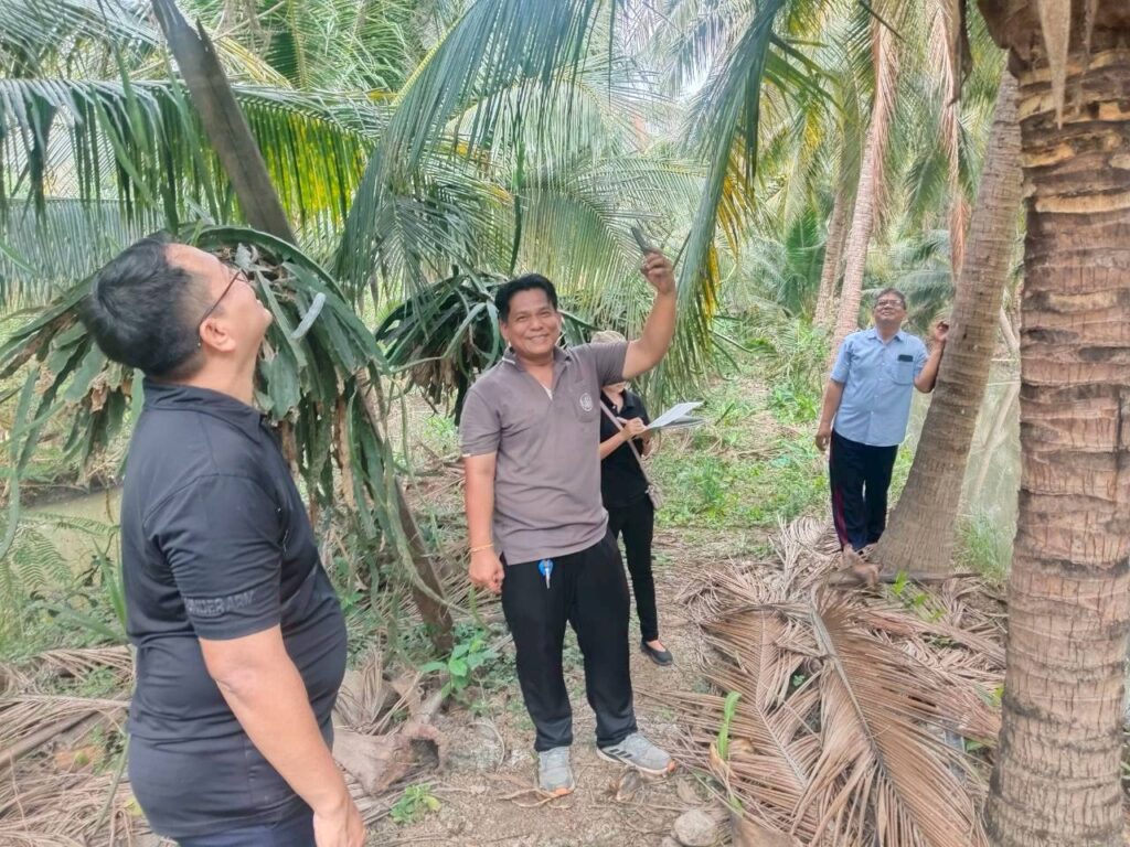 วันที่ 26 กุมภาพันธ์ 2569 #นายประสิทธิ์ สิงห์ชา #เกษตรจังหวัดสมุทรสงคราม มอบหมายให้ เจ้าหน้าที่กลุ่มอารักขาพืชและเจ้าหน้าที่สำนักงานเกษตรอำเภอเมืองสมุทรสงคราม ร่วมลงพื้นที่ร่วมกับเกษตรกรสำรวจแปลงติดตามสถานการณ์ศัตรูพืช เพื่อสำรวจและจัดเก็บข้อมูลศัตรูพืชและสภาพอากาศในแปลงพืชเศรษฐกิจสำคัญจาก Weather Station (DOAE PEST FORECAST) แลกเปลี่ยนปัญหา ข้อเสนอแนะร่วมกับเกษตรกรผู้ปลูกมะพร้าว สร้างการรับรู้การทำการเกษตรที่เป็นมิตรกับสิ่งแวดล้อม โดยการจัดการเปลือกมะพร้าวด้วยการถมที่และใช้เชื้อราเมตาไรเซียมควบคุมด้วงแรดมะพร้าว พร้อมสนับสนุนเชื้อราเมตาไรเซียม และแตนเบียนบราคอน ณ แปลงมะพร้าวนายครรชิต น่วมสวัสดิ์ หมู่ 5 ตำบลแหลมใหญ่ อำเภอเมืองฯ จังหวัดสมุทรสงคราม