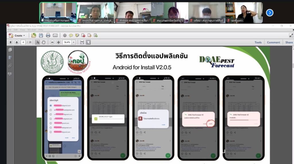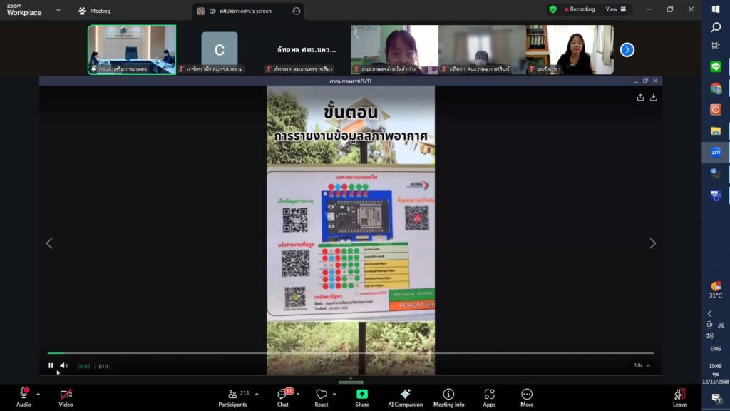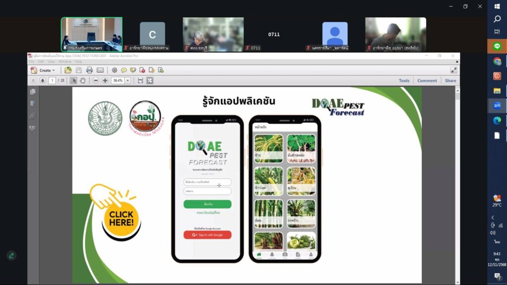 วันที่ 12 พฤศจิกายน 2568 นายประสิทธิ์ สิงห์ชา #เกษตรจังหวัดสมุทรสงคราม มอบหมายให้เจ้าหน้าที่กลุ่มอารักขาพืช พร้อมด้วยเจ้าหน้าที่สำนักงานเกษตรอำเภอเมืองสมุทรสงคราม ร่วมประชุมชี้แจงการดำเนินงานเก็บข้อมูลสภาพอากาศและสำรวจการระบาดศัตรูพืชด้วยแอปพลิเคชัน DOAE PEST FORECAST เพื่อชี้แจงการดำเนินงานโครงการส่งเสริมการจัดการสุขภาพพืชเพื่อเพิ่มประสิทธิภาพการผลิตสินค้าเกษตร กิจกรรมส่งเสริมการจัดการสุขภาพพืชเพื่อเพิ่มประสิทธิภาพการผลิตสินค้าเกษตร กิจกรรมย่อยเฝ้าระวังและเตรียมความพร้อมรับมือสถานการณ์การระบาดศัตรูพืชเชิงรุก สำรวจศัตรูพืชและข้อมูลสภาพแวดล้อมในแปลงเพื่อการพัฒนาแอปพลิเคชัน DOAE PEST FORCAST ผ่านระบบออนไลน์ (Zoom Meeting)