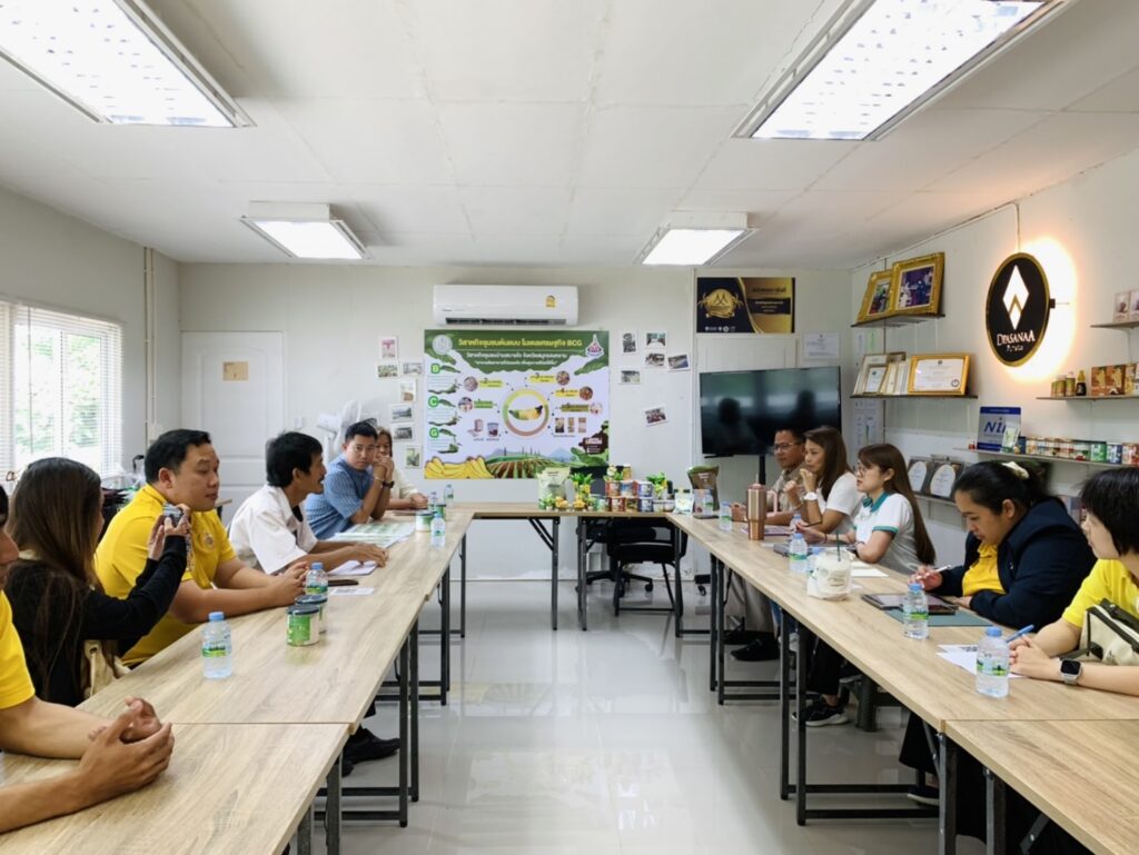 วันที่ 1 กันยายน 2568 นายประสิทธิ์ สิงห์ชา #เกษตรจังหวัดสมุทรสงคราม พร้อมด้วย นายทรงกลด วีระเสถียร นักวิชาการส่งเสริมการเกษตรชำนาญการ และเจ้าหน้าที่สำนักงานเกษตรอำเภอเมืองสมุทรสงคราม ลงพื้นที่ร่วมกับเจ้าหน้าที่จากกองส่งเสริมวิสาหกิจชุมชน กรมส่งเสริมการเกษตร เพื่อติดตามการดำเนินงานส่งเสริมวิสาหกิจชุมชน ภายใต้โครงการส่งเสริมและพัฒนาผู้ประกอบการวิสาหกิจชุมชน ปี 2568 กิจกรรมพัฒนาวิสาหกิจชุมชนต้นแบบ (ผู้ประกอบการ) ณ วิสาหกิจชุมชนบ้านสบายใจ ตำบลลาดใหญ่ อำเภอเมืองสมุทรสงคราม จังหวัดสมุทรสงคราม และกิจกรรมส่งเสริมการสร้างเครือข่ายวิสาหกิจชุมชน ณ เครือข่ายวิสาหกิจชุมชนน้ำตาลมะพร้าวคลองเขิน-ท่าคา ตำบลท่าคา อำเภออัมพวา จังหวัดสมุทรสงคราม