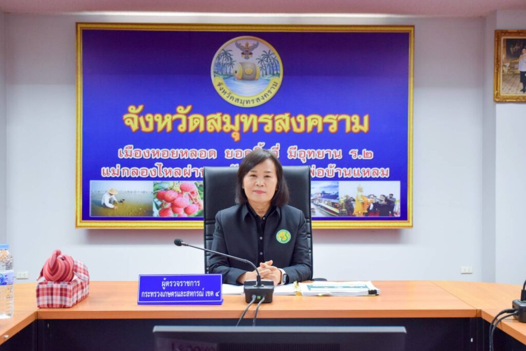 จากนั้น เวลา 09.00 น. นางสุวรรณี ศรีสุวรรณ์ ผู้ตรวจราชการกระทรวงเกษตรและสหกรณ์ เขต 4 ให้เกียรติ มอบใบประกาศเกียรติคุณปราชญ์เกษตรของแผ่นดินระดับเขต ประจําปี 2569 สาชาปราชญ์เกษตรเศรษฐกิจพอเพียง ให้ นางถิรดา เอกแก้วนําชัย และมอบป้ายสถานที่จําหน่ายสินค้าเกษตรปลอดภัยได้อัตลักษณ์พื้นถิ่น สถานที่จําหน่ายสัมโอ ขาวใหญ่ สมุทรสงคราม ให้ นายธีระพงศ์ ศิริบุญญาวงศ์ จากนั้นผู้ตรวจราชการกระทรวงเกษตรและสหกรณ์ เขต 4 เป็นประธานการประชุม ตรวจติดตามผลการดําเนินงานตามแผนการตรวจราชการ ของผู้ตรวจราชการกระทรวงเกษตรและสหกรณ์ เขตตรวจราชการกระทรวงเกษตรและสหกรณ์ โดยมี นายประสิทธิ์ สิงห์ชา เกษตรจังหวัดสมุทรสงคราม เป็นผู้ช่วยผู้ตรวจราชการกระทรวงเกษตรและสหกรณ์ เขตตรวจราชการที่ 4 พร้อมด้วย นายเสนีย์ ตรุยานนท์ หัวหน้ากลุ่มยุทธศาสตร์และสารสนเทศ สำนักงานเกษตรจังหวัดสมุทรสงคราม ส่วนราชการสังกัดกระทรวงเกษตรและสหกรณ์จังหวัดสมุทรสงคราม และเจ้าหน้าที่ที่เกี่ยวข้อง ร่วมประชุม เพื่อพิจารณาผลการดําเนินงานตามแผนการตรวจ ราชการของผู้ตรวจราชการกระทรวงเกษตรและสหกรณ์ ประจำปีงบประมาณ พ.ศ. 2569 ในนโยบายสําคัญของกระทรวงเกษตรและสหกรณ์ และประเด็นการแกไขปัญหาความเดือดร้อนของประชาชนในพื้นที่ โครงการอันเนื่องมาจากพระราชดําริ ภัยพิบัติด้านการเกษตร การจัดท่า Project Bank ด้านการเกษตรของสํานักงานเกษตรและสหกรณ์จังหวัด และข้อสั่งการของรัฐมนตรีว่าการกระทรวงเกษตรและสหกรณ์ รัฐมนตรีช่วยว่าการกระทรวงเกษตรและสหกรณ์ และผู้บริหารกระทรวงเกษตรและสหกรณ์ ณ ห้องประชุมบางคนที ชั้น 3 ศาลากลางจังหวัดสมุทรสงคราม