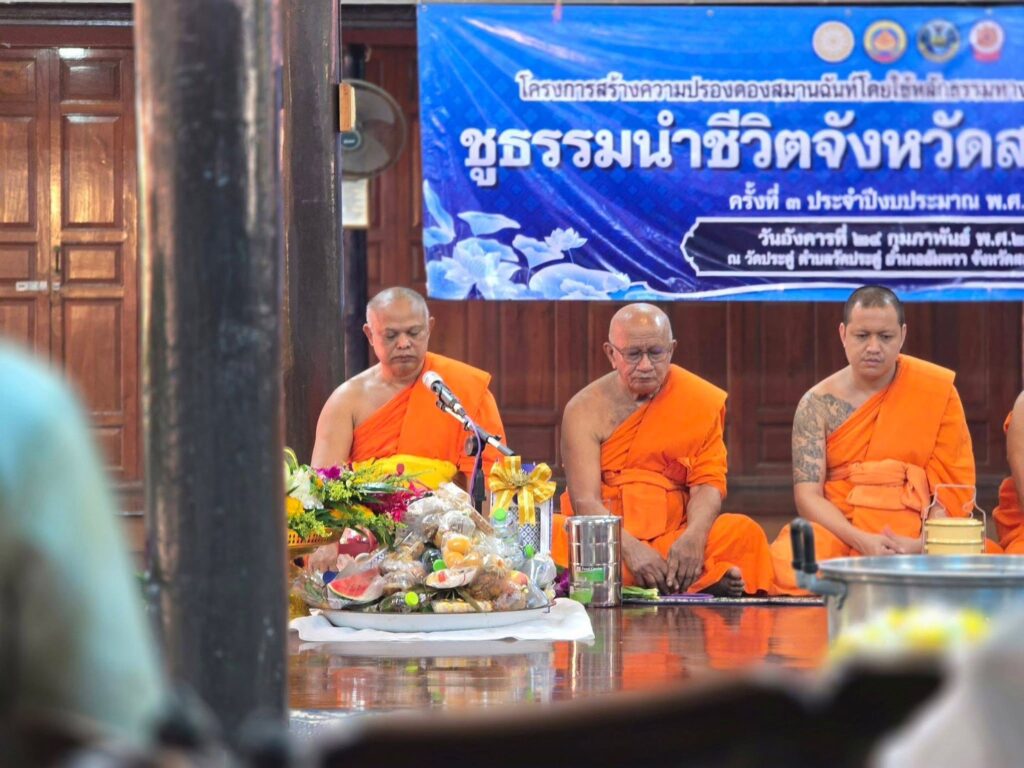 วันที่ 24 กุมภาพันธ์ 2569 เวลา 08.00 น. นายประสิทธิ์ สิงห์ชา #เกษตรจังหวัดสมุทรสงคราม มอบหมายให้เจ้าหน้าที่สำนักงานเกษตรจังหวัดสมุทรสงคราม ร่วมโครงการชูธรรมนำชีวิต จังหวัดสมุทรสงคราม ครั้งที่ 4 ประจำปีงบประมาณ พ.ศ.2569 โดยมี นายกรกฎ วงษ์สุวรรณ รองผู้ว่าราชการจังหวัดสมุทรสงคราม เป็นประธานในพิธีเปิด ณ วัดประดู่ พระอารามหลวง ตำบลวัดประดู่ อำเภออัมพวา จังหวัดสมุทรสงคราม