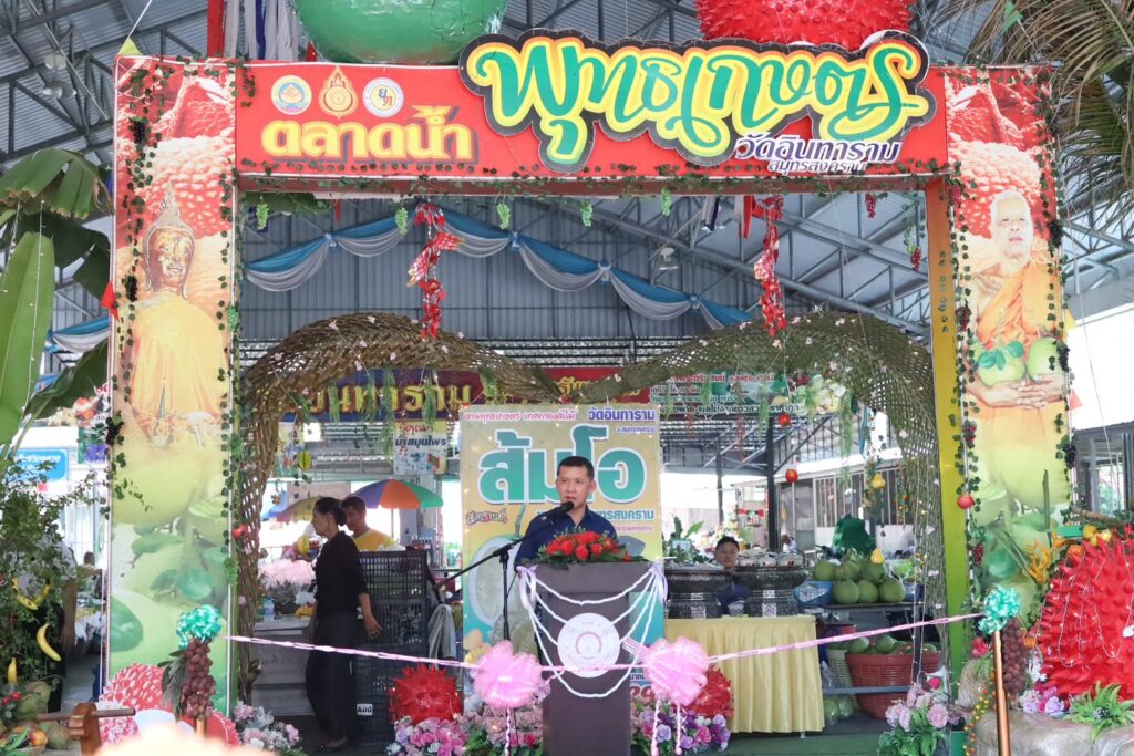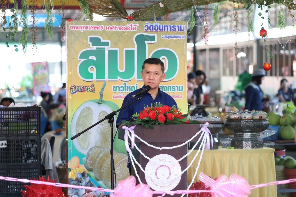วันเสาร์ที่ 28 มีนาคม 2569 นายประสิทธิ์ สิงห์ชา เกษตรจังหวัดสมุทรสงคราม พร้อมด้วย นายเสนีย์ ตรุยานนท์ หัวหน้ากลุ่มยุทธศาสตร์และสารสนเทศ ร่วมงานพุทธเกษตร เทศกาลผลไม้ส้มโอขาวใหญ่ สมุทรสงคราม ในการนี้เกษตรจังหวัดสมุทรสงคราม ได้กล่าวต้อนรับในพิธีเปิดงาน โดยมีนายชยชัย แสงอินทร์ ผู้ว่าราชการจังหวัดสมุทรสงคราม เป็นประธานในพิธีเปิด