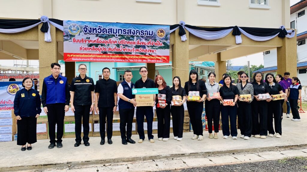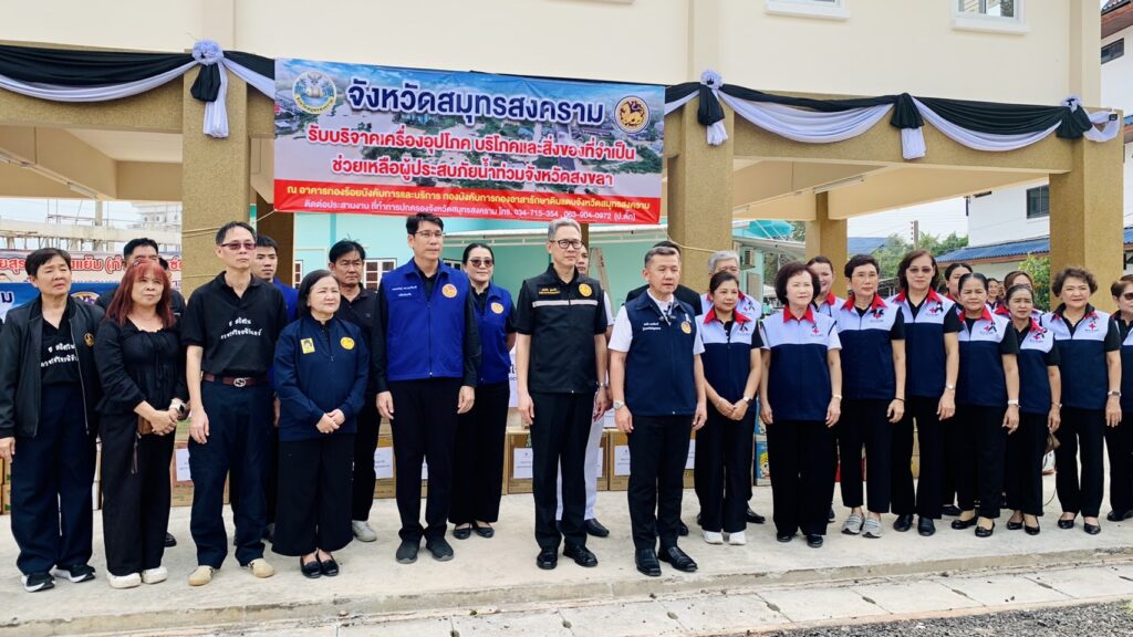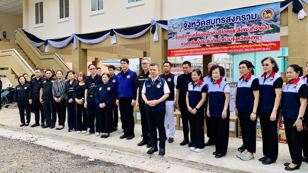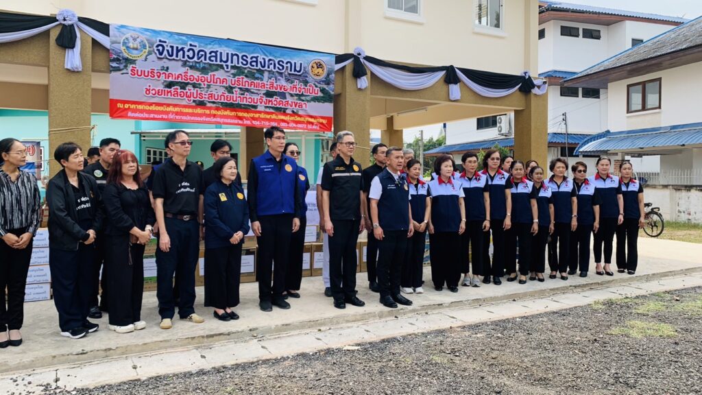 วันที่ 25 พฤศจิกายน 2568 เวลา 13.00 น. นายประสิทธิ์ สิงห์ชา #เกษตรจังหวัดสมุทรสงคราม มอบหมายให้ นายเสนีย์ ตรุยานนท์ หัวหน้ากลุ่มยุทธศาสตร์และสารสนเทศ พร้อมด้วยนางชมัยพร โยนกนา หัวหน้าฝ่ายบริหารทั่วไป และเจ้าหน้าที่สำนักงานเกษตรจังหวัดสมุทรสงคราม ร่วมบริจาคเครื่องอุปโภคบริโภคและสิ่งของจำเป็น เพื่อช่วยเหลือผู้ประสบภัยน้ำท่วมจังหวัดสงขลา โดยได้ส่งมอบสิ่งของร่วมกับหัวหน้าส่วนราชการในพื้นที่ ณ อาคารกองร้อยบังคับการและบริการ กองบังคับการกองอาสารักษาดินแดนจังหวัดสมุทรสงคราม เพื่อรวบรวมและนำไปบรรเทาความเดือดร้อนแก่ผู้ประสบภัยต่อไป