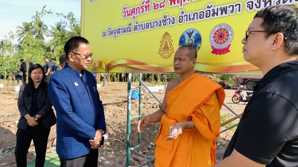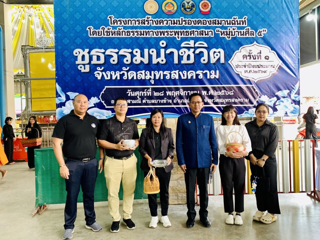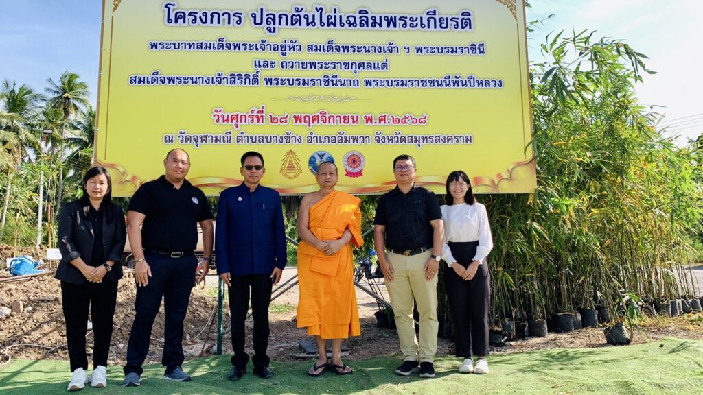 วันที่ 28 พฤศจิกายน 2568 เวลา 08.00 น. นายประสิทธิ์ สิงห์ชา #เกษตรจังหวัดสมุทรสงคราม พร้อมด้วย นายชุมพร ผลประเสริฐ นักวิชาการส่งเสริมการเกษตรชำนาญการ ปฏิบัติหน้าที่หัวหน้ากลุ่มอารักขาพืช และเจ้าหน้าที่ ร่วมโครงการชูธรรมนำชีวิต จังหวัดสมุทรสงคราม ประจำปีงบประมาณ พ.ศ. 2569 ครั้งที่ 1 โดยกิจกรรมประกอบด้วยการทำบุญ ตักบาตร การไหว้พระ สวดมนต์ การแสดงตนเป็นพุทธมามกะ การสมาทานศีล การถวายสังฆทาน การบรรยายธรรม และการเจริญจิตภาวนา จากนั้นร่วมโครงการปลูกต้นไผ่เฉลิมพระเกียรติพระบาทสมเด็จพระเจ้าอยู่หัว สมเด็จพระนางเจ้าฯ พระบรมราชินี และถวายพระราชกุศลแด่สมเด็จพระนางเจ้าสิริกิติ์ พระบรมราชินีนาถ พระบรมราชชนนีพันปีหลวง ณ วัดจุฬามณี ตำบลบางช้าง อำเภออัมพวา จังหวัดสมุทรสงคราม
