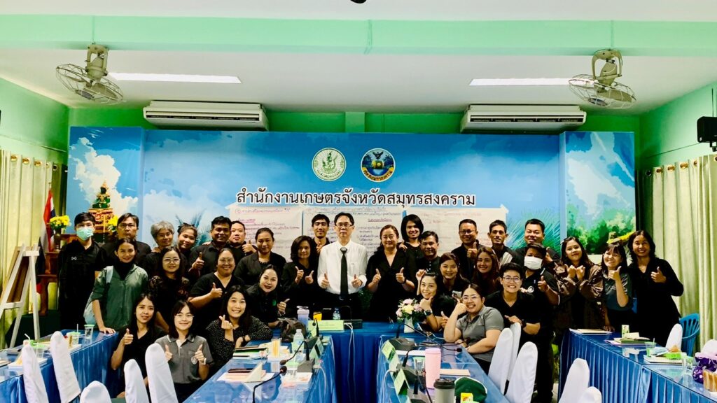 วันที่ 11 ธันวาคม 2568 นายประสิทธิ์ สิงห์ชา #เกษตรจังหวัดสมุทรสงคราม พร้อมด้วยหัวหน้ากลุ่ม/ฝ่าย เกษตรอำเภอ และเจ้าหน้าที่ จัดเวทีแลกเปลี่ยนเรียนรู้ระดับอำเภอ (District Workshop : DW) ครั้งที่ 1/2569 โดยมีวัตถุประสงค์ เพื่อให้เจ้าหน้าที่ส่งเสริมการเกษตรทุกระดับ มีเวทีในการแลกเปลี่ยนเรียนรู้ เพื่อพัฒนาการดำเนินงาน ในการนี้ได้รีบเกียรติจาก นายรนัสถ์ชัย พุ่มเจริญ รองผู้ว่าราชการจังหวัดสมุทรสงคราม เป็นประธานกล่าวเปิดงาน พร้อมมอบนโยบายการดำเนินงานด้านการเกษตรในพื้นที่จังหวัดสมุทรสงคราม โดยกิจกรรมในเวที DW ประกอบด้วย การมอบนโยบายการดำเนินงานส่งเสริมการเกษตร ประจำปีงบประมาณ พ.ศ. 2569 โดยเกษตรจังหวัดสมุทรสงคราม การชี้แจงการดำเนินงานโครงการตามตัวชี้วัด ครั้งที่ 1 โดยเจ้าหน้าที่ผู้รับผิดชอบโครงการ การประชาสัมพันธ์ โครงการ OTOD AI TRANSFORMATION โดย เจ้าหน้าที่จากสำนักงานส่งเสริมเศรษฐกิจดิจิทัล (DEPA) จากนั้นได้แลกเปลี่ยนเรียนรู้ร่วมกันระหว่างหัวหน้ากลุ่ม เกษตรอำเภอ และนักวิชาการส่งเสริมการเกษตรในระดับจังหวัดและอำเภอ ในหัวข้อ “การส่งเสริมการเกษตรแบบไม่เผา 3R (Reduce Reuse Recycle)” , “การพัฒนาเครือข่ายทางการเกษตรให้มีความเข้มแข็ง ” และ “การพัฒนาระบบบริหารจัดการภายในองค์กรให้ทันสมัย โปร่งใส มีประสิทธิภาพ” ณ ห้องประชุมสำนักงานเกษตรจังหวัดสมุทรสงคราม