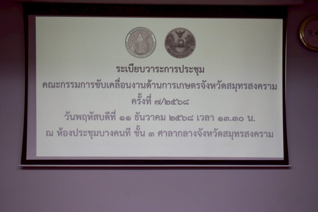 วันที่ 11 ธันวาคม 2568 เวลา 13.30 น. นายประสิทธิ์ สิงห์ชา #เกษตรจังหวัดสมุทรสงคราม พร้อมด้วย นายเสนีย์ ตรุยานนท์ หัวหน้ากลุ่มยุทธศาสตร์และสารสนเทศ เข้าร่วมประชุมคณะกรรมการขับเคลื่อนงานด้านการเกษตรจังหวัดสมุทรสงคราม ครั้งที่ 7/2568 โดยมี นายประดิษฐ์ เกษมวิสิฐกุล เกษตรและสหกรณ์จังหวัดสมุทรสงคราม เป็นประธาน หัวหน้าส่วนราชการกระทรวงเกษตรและสหกรณ์ เข้าร่วม เพื่อพิจารณาเกี่ยวกับปัญหาด้านการเกษตรในพื้นที่จังหวัดสมุทรสงคราม เพื่อหาแนวทางแก้ไข และการติดตามแก้ไขปัญหาภัยพิบัติด้านการเกษตร ณ ห้องประชุมบางคนที ชั้น 3 ศาลากลางจังหวัดสมุทรสงคราม