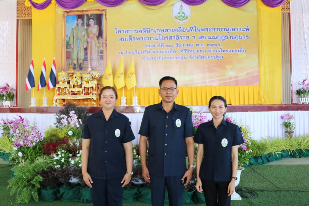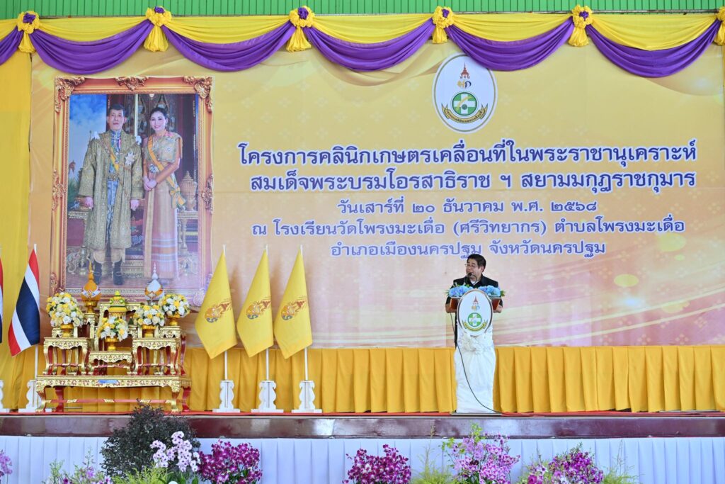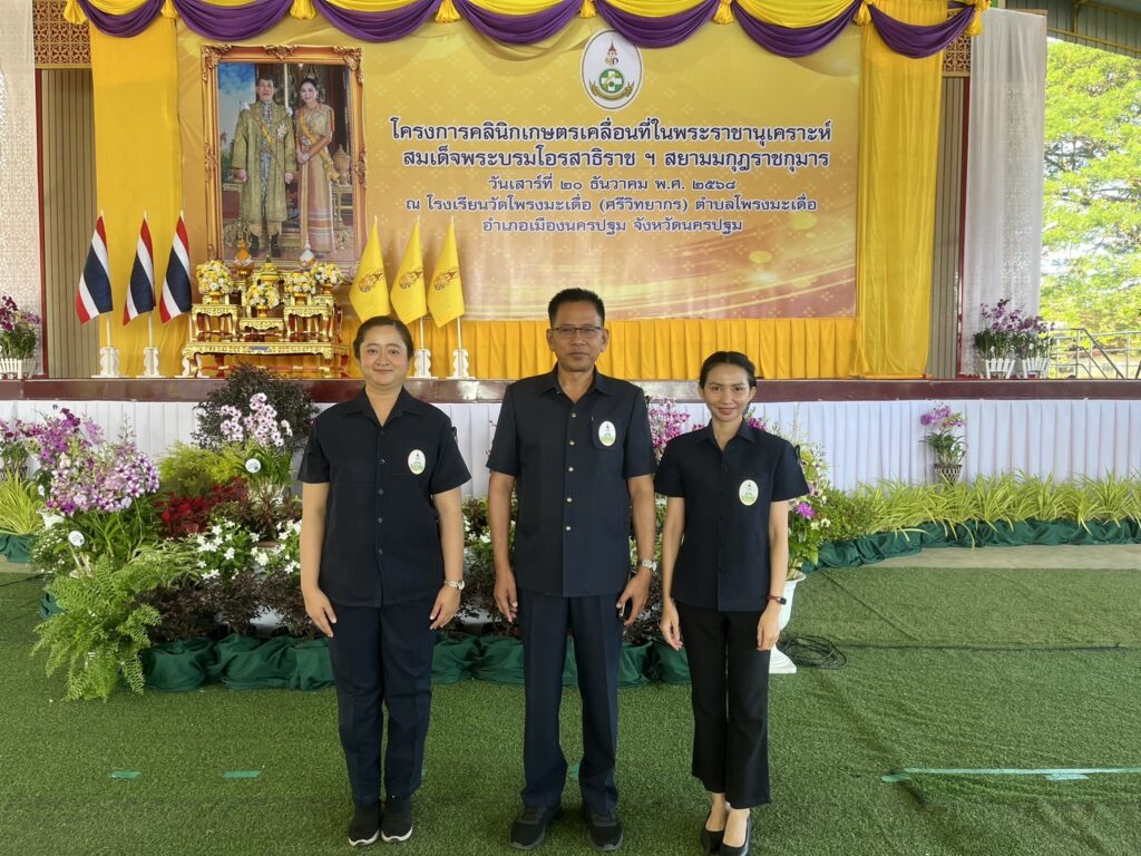 วันที่ 20 ธันวาคม 2568 นายประสิทธิ์ สิงห์ชา #เกษตรจังหวัดสมุทรสงคราม พร้อมด้วย นางมัทยา สุนทรวาทิน หัวหน้ากลุ่มส่งเสริมและพัฒนาการผลิต และเจ้าหน้าที่ ร่วมเป็นเกียรติในพิธีเปิดงานโครงการคลินิกเกษตรเคลื่อนที่ในพระราชานุเคราะห์ สมเด็จพระบรมโอรสาธิราช ฯ สยามมกุฎราชกุมาร ครั้งที่ 1 ประจำปีงบประมาณ พ.ศ. 2569 โดยมีนางอัญชลี สุวจิตตานนท์ อธิบดีกรมหม่อนไหม รักษาราชการแทนอธิบดีกรมส่งเสริมการเกษตร กล่าวรายงาน และมี ร้อยเอกธรรมนัส พรหมเผ่า รองนายกรัฐมนตรี และรัฐมนตรีว่าการกระทรวงเกษตรและสหกรณ์ เป็นประธานในพิธีเปิดงาน ณ โรงเรียนวัดโพรงมะเดื่อ (ศรีวิทยากร) ตำบลโพรงมะเดื่อ อำเภอเมืองนครปฐม จังหวัดนครปฐม