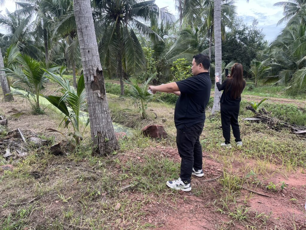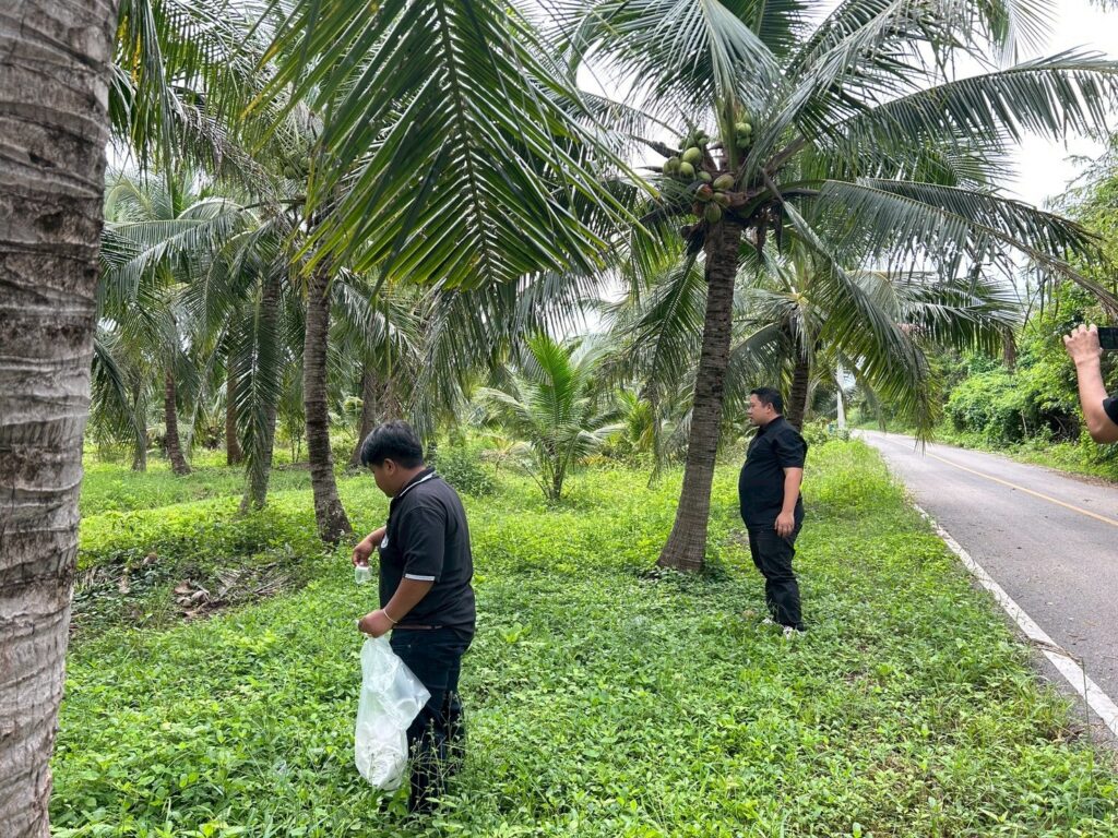 นางสาวสุชาสินี ดิษฐสมบูรณ์ เกษตรอำเภอเมืองสมุทรสงคราม มอบหมายให้เจ้าหน้าที่สำนักงานเกษตรอำเภอเมืองสมุทรสงคราม ลงพื้นที่ติดตามการระบาดของหนอนหัวดำมะพร้าว และปล่อยแตนเบียนบราคอน เพื่อป้องกันกำจัดหนอนหัวดำในพื้นที่แปลงมะพร้าว ณ ตำบลนางตะเคียน อำเภอเมืองสมุทรสงคราม จังหวัดสมุทรสงคราม