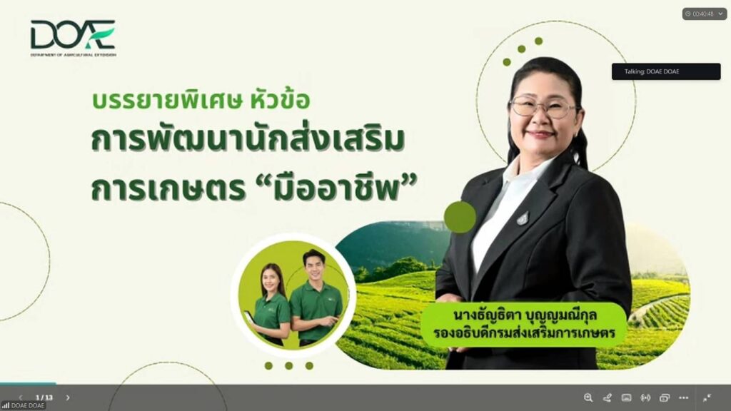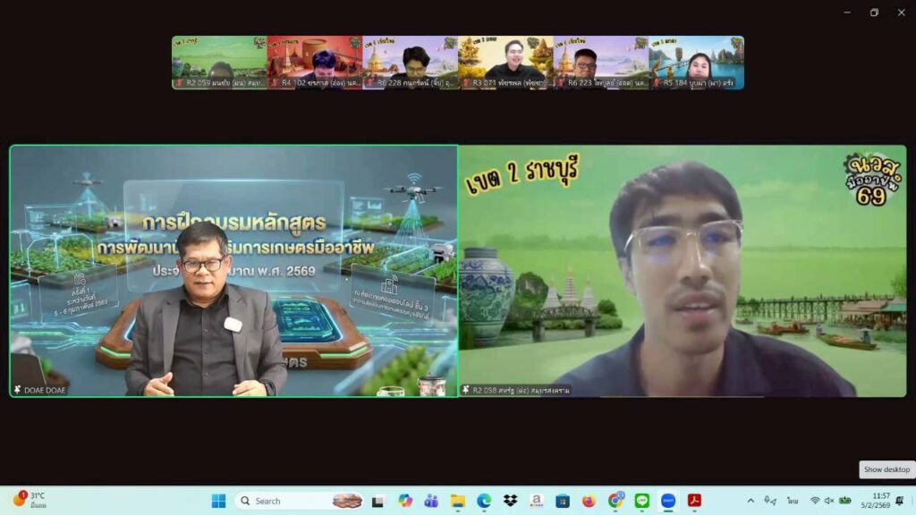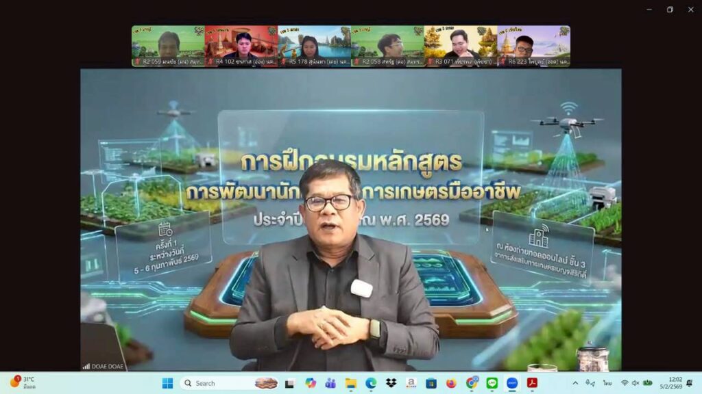 นางสาวสุชาสินี ดิษฐสมบูรณ์ เกษตรอำเภอเมืองสมุทรสงคราม มอบหมายให้นายมนชัย คงมาก นักวิชาการส่งเสริมการเกษตรปฏิบัติการ และนายสหรัฐ โตสกุล นักวิชาการส่งเสริมการเกษตรปฏิบัติการ เข้าร่วมการฝึกอบรมหลักสูตร “การพัฒนานักส่งเสริมการเกษตรมืออาชีพ ประจำปีงบประมาณ พ.ศ. 2569” ครั้งที่ 1 ในระหว่างวันที่ 5-6 กุมภาพันธ์ 2569 วัตถุประสงค์เพื่อพัฒนาความรู้ทักษะ พัฒนาเครือข่ายการทำงาน และเสริมสร้างกระบวนทัศน์เชิงบวกในการทำงานส่งเสริมการเกษตรที่สอดคล้องกับสถานการณ์การเปลี่ยนแปลงในปัจจุบัน โดยมีนางธัญธิตา บุญญมณีกุล รองอธิบดีกรมส่งเสริมการเกษตร เป็นประธานในพิธีเปิดโครงการพัฒนานักส่งเสริมการเกษตรมืออาชีพในครั้งนี้ เป้าหมายผู้เข้ารับการอบรมรวมทั้งสิ้น 270 คน ผ่านระบบออนไลน์ ZOOM MEETING ณ ห้องถ่ายทอดออนไลน์ ชั้น 3 อาคารส่งเสริมการเกษตรเบญจสิริกิติ์ กรมส่งเสริมการเกษตร