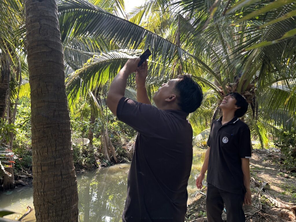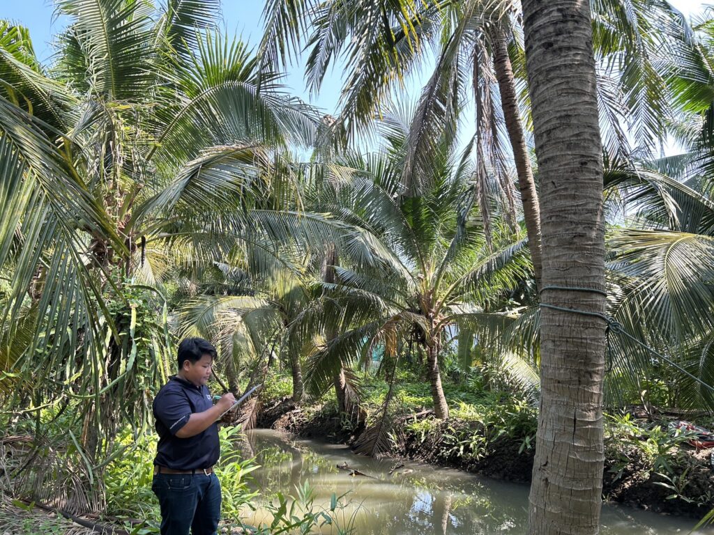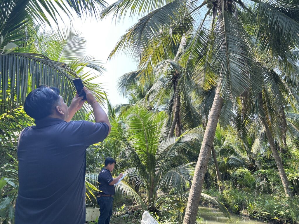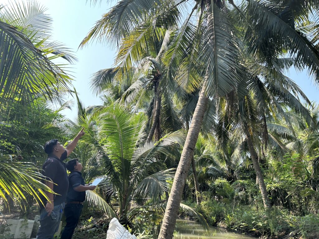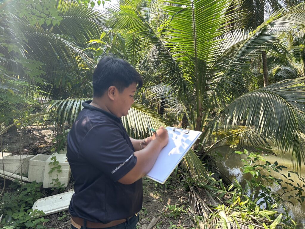 นางสาวสุชาสินี ดิษฐสมบูรณ์ เกษตรอำเภอเมืองสมุทรสงคราม มอบหมายให้เจ้าหน้าที่เกษตรอำเภอเมืองสมุทรสงคราม ร่วมลงพื้นที่ร่วมกับเกษตรกรสำรวจแปลงติดตามสถานการณ์ศัตรูพืช เพื่อสำรวจและจัดเก็บข้อมูลศัตรูพืชและสภาพอากาศในแปลงพืชเศรษฐกิจสำคัญจาก Weather Station (DOAE PEST FORECAST) ร่วมแลกเปลี่ยนปัญหา สร้างการรับรู้การทำการเกษตรที่เป็นมิตรกับสิ่งแวดล้อม และข้อเสนออื่น ๆ ณ พื้นที่แปลงมะพร้าวของนายครรชิต น่วมสวัสดิ์ หมู่ 5 ตำบลแหลมใหญ่ อำเภอเมืองฯ จังหวัดสมุทรสงคราม