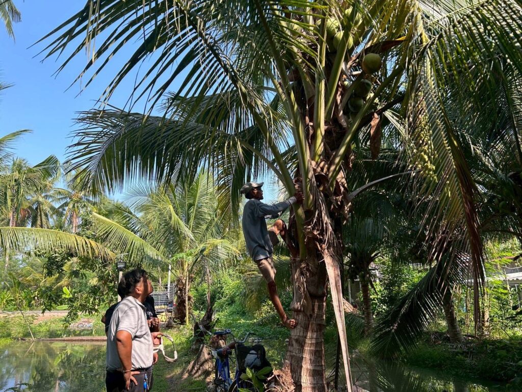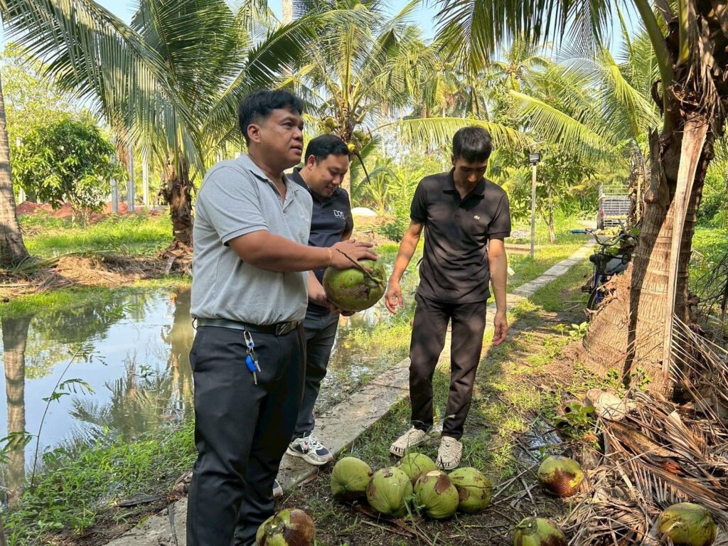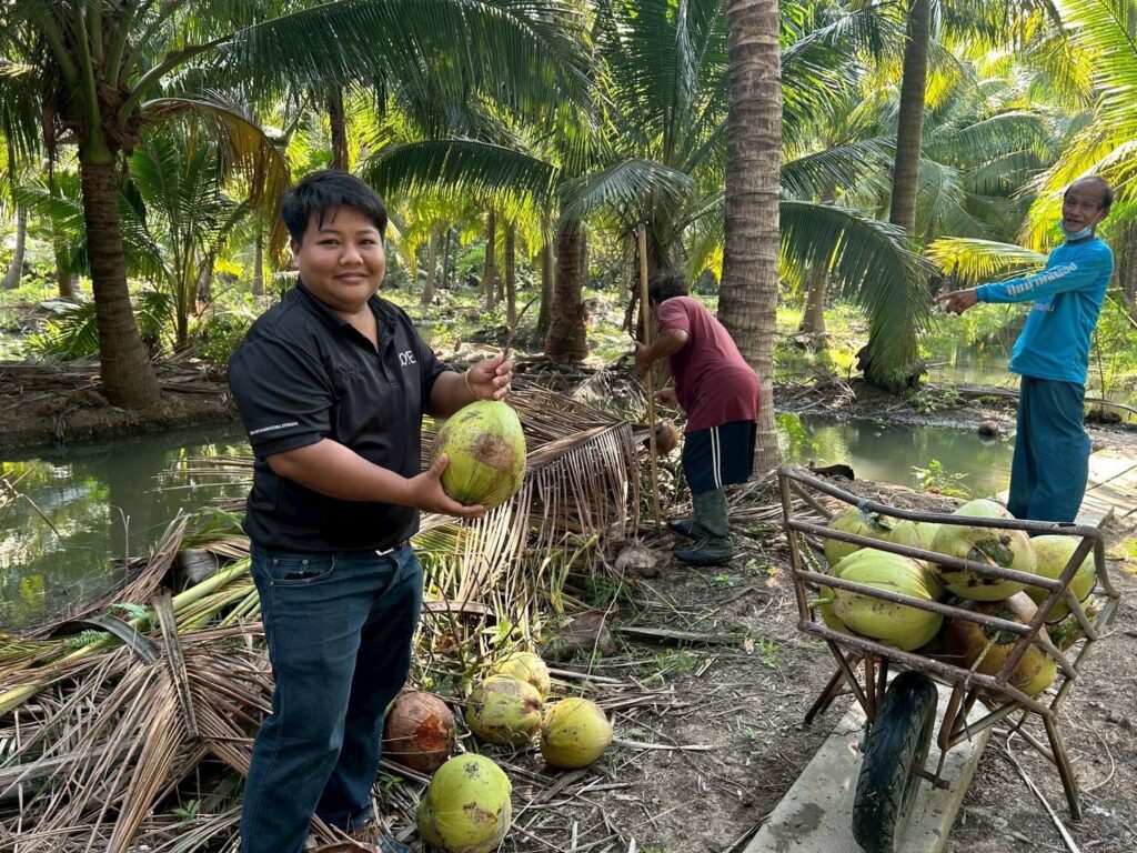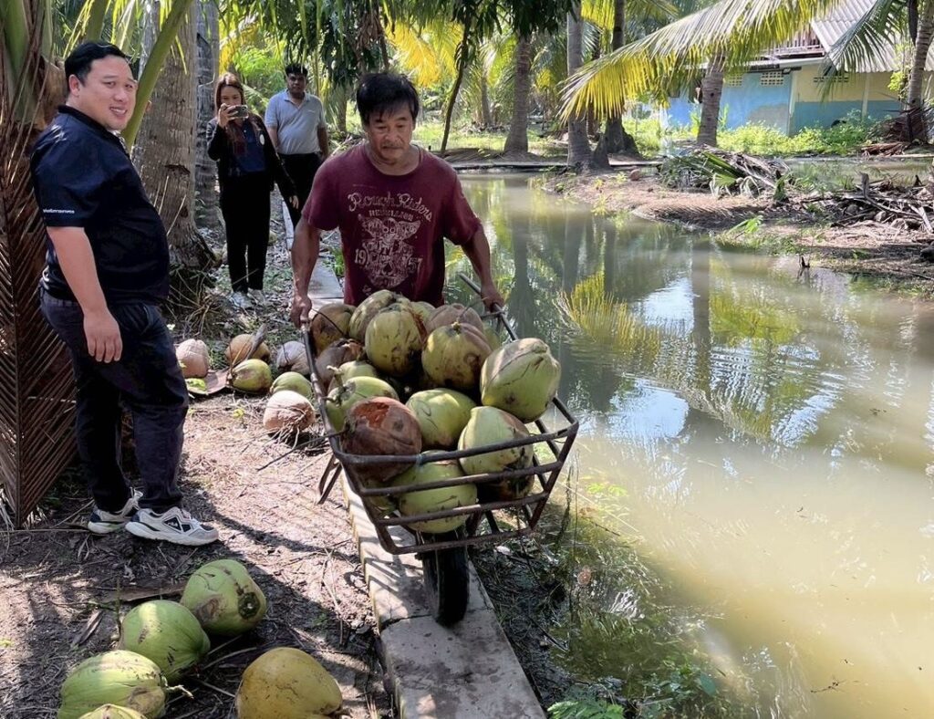 นางสุชาสินี ดิษฐสมบูรณ์ เกษตรอำเภอเมืองสมุทรสงคราม มอบหมายให้เจ้าหน้าที่เกษตรอำเภอเมืองสมุทรสงคราม ลงพื้นที่ติดตามสถานการณ์ผลผลิตมะพร้าวผล ทั้งนี้ได้แลกเปลี่ยนเรียนรู้วิธีการเก็บมะพร้าวผลด้วยการใช้ปลอก และสอบถามราคาจากพ่อค้าที่มารับซื้อผลผลิต ซึ่งราคาหน้าสวน ราคาผลละ 5 บาท พร้อมทั้งสอบถามปัญหาและอุปสรรคของสถานการณ์มะพร้าวผล และสอบถามปัญหาเรื่องโรคและศัตรูพืช พร้อมทั้งให้คำแนะนำในการดูแลป้องกันกำจัดศัตรูพืชมะพร้าว เพื่อลดการระบาดของโรคและศัตรูพืชในช่วงฤดูร้อน ณ แปลงมะพร้าวของนายมาโนช ศรีรุ้ง เกษตรกรหมู่ที่ 5 ตำบลคลองเขิน อำเภอเมืองสมุทรสงคราม จังหวัดสมุทรสงคราม