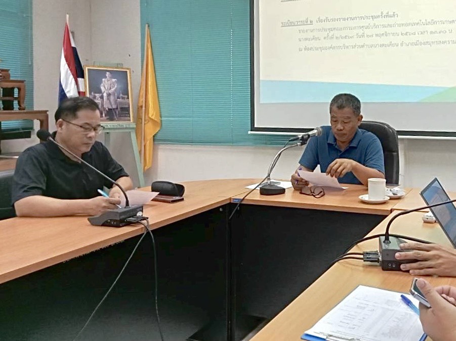 นางสาวสุชาสินี ดิษฐสมบูรณ์ เกษตรอำเภอเมืองสมุทรสงคราม มอบหมายให้เจ้าหน้าที่เกษตรอำเภอเมืองสมุทรสงคราม ร่วมประชุมคณะกรรมการบริหารศูนย์บริการและถ่ายทอดเทคโนโลยีการเกษตรประจำตำบลนางตะเคียน โดยได้ประชาสัมพันธ์ข่าวสารด้านการเกษตรรวมถึงหารือเกี่ยวกับสถานการณ์ /ปัญหาในพื้นที่ เพื่อหาแนวทางในการแก้ไขและพัฒนาการเกษตรของตำบลนางตะเคียนอย่างมีประสิทธิภาพ ณ ห้องประชุมองค์การบริหารส่วนตำบลนางตะเคียน อำเภอเมืองฯ จังหวัดสมุทรสงคราม