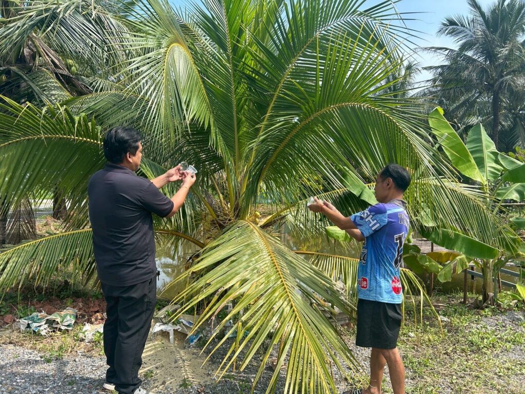 ข่าวประชาสัมพันธ์สำนักงานเกษตรอำเภอเมืองสมุทรสงคราม ลงพื้นที่สำรวจเฝ้าระวังการระบาดหนอนหัวดำมะพร้าวและสนับสนุนแตนเบียนบราคอนให้กับอาสาสมัครเกษตรหมู่บ้าน mueang / 10 พฤศจิกายน 2025 วันที่ 10 พฤศจิกายน